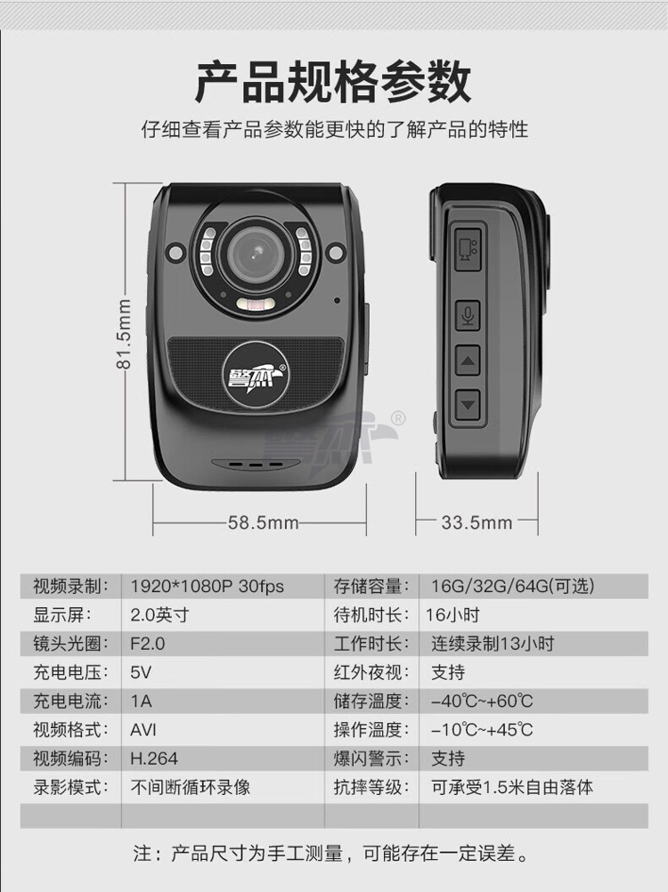 产品名称 : 警杰DSJ-T8执法视音频记录仪 32G