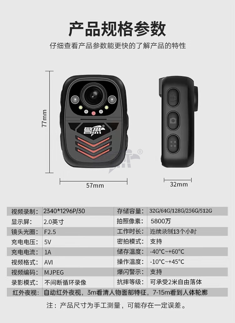 产品名称 : 警杰DSJ-N1执法视音频记录仪 32G
