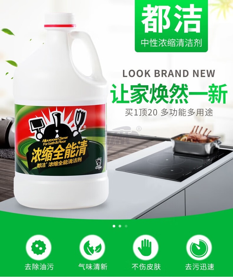 产品名称 : 都洁浓缩全能清3.7L*4桶/箱 大桶装 全能清洁剂 地面家具浴室浴缸污渍清洁液清洁剂 整箱装