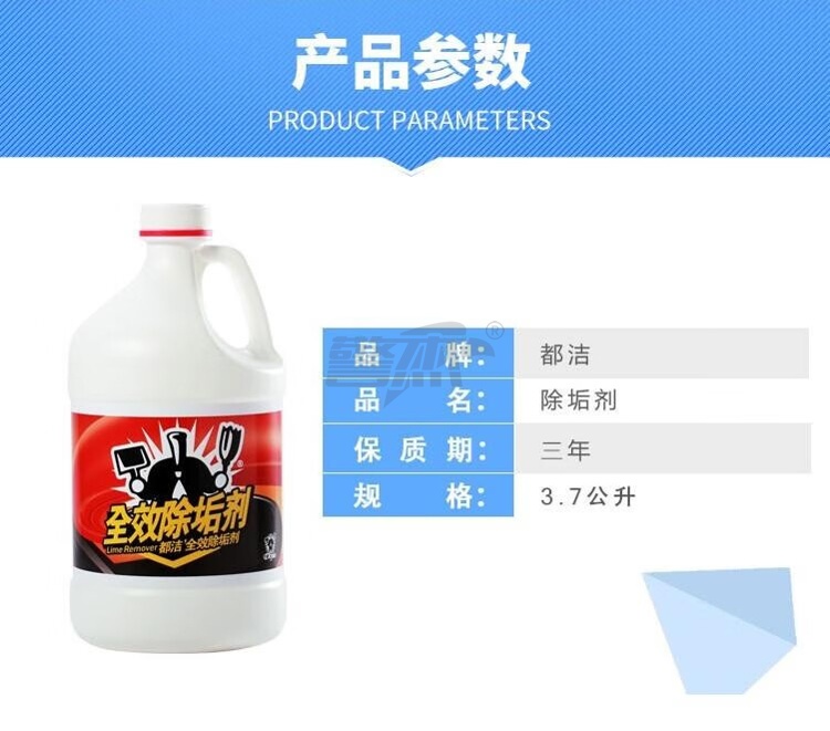 产品名称 : 都洁全效除垢剂3.7L*4桶/箱 大桶装 去垢剂 清除水垢 洁厕剂 清洁液 整箱装