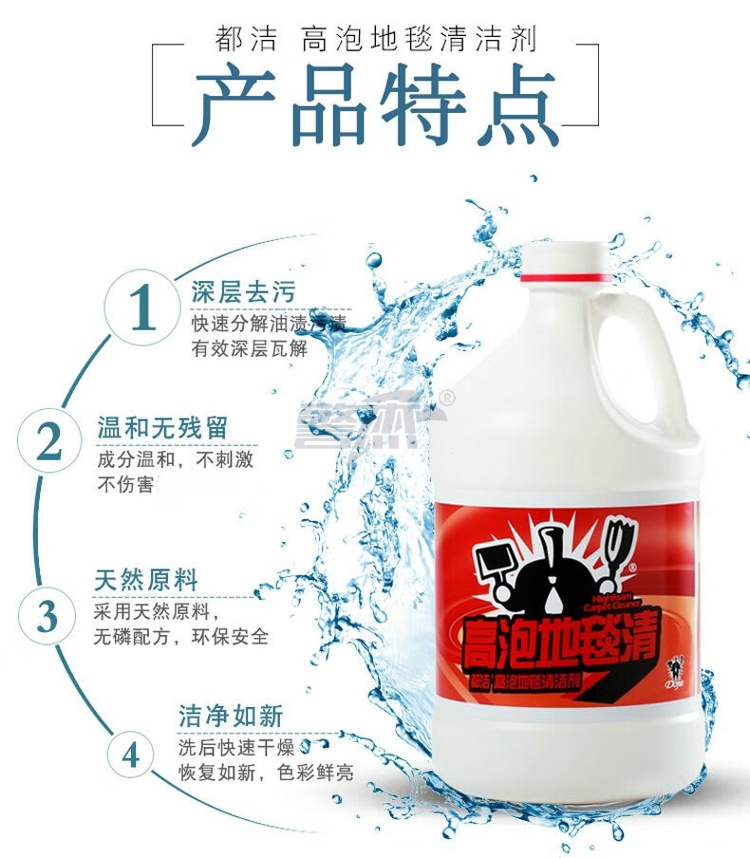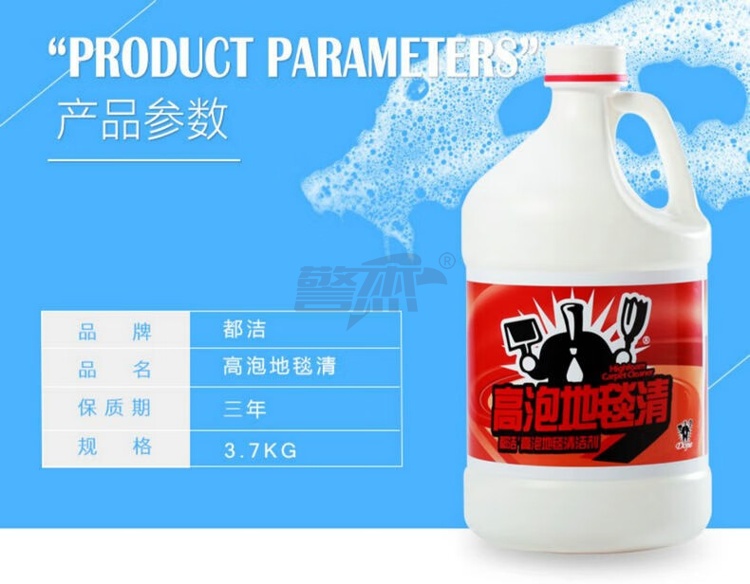 产品名称 : 都洁高泡地毯清3.7L 桶装地毯清洁剂 去污免水洗布艺地毯清洗剂 地毯水 单桶装
