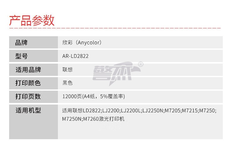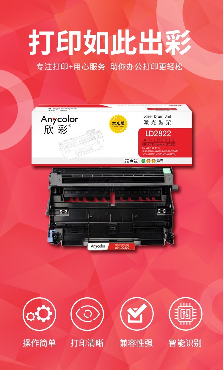 产品名称 : 欣彩 AR-LD2822鼓架 大众版硒鼓组件 适用联想LD2822 LJ2200 LJ2200L LJ2250N M7205 M7215 M7250激光打印机
