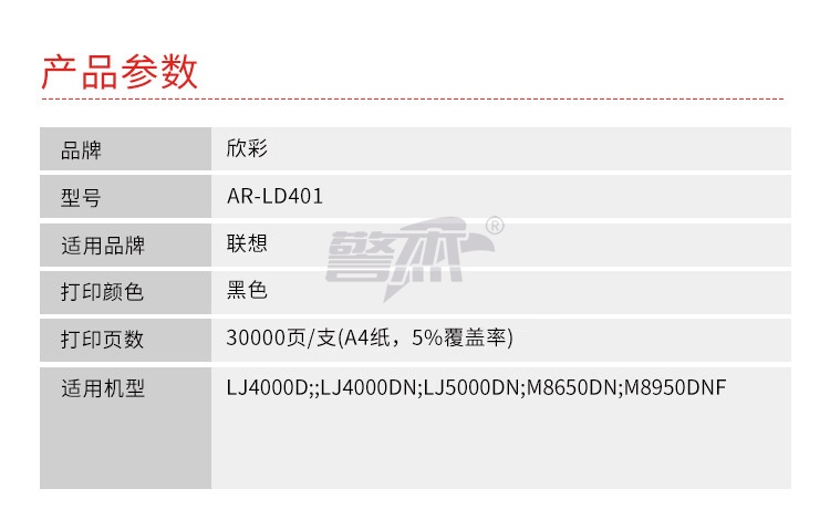 产品名称 : 欣彩 AR-LD401 鼓架专业版 适用联想LD401 LJ4000D DN LJ5000DN M8650DN M8950DNF激光打印机
