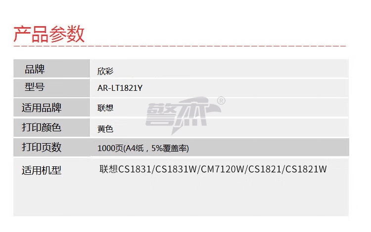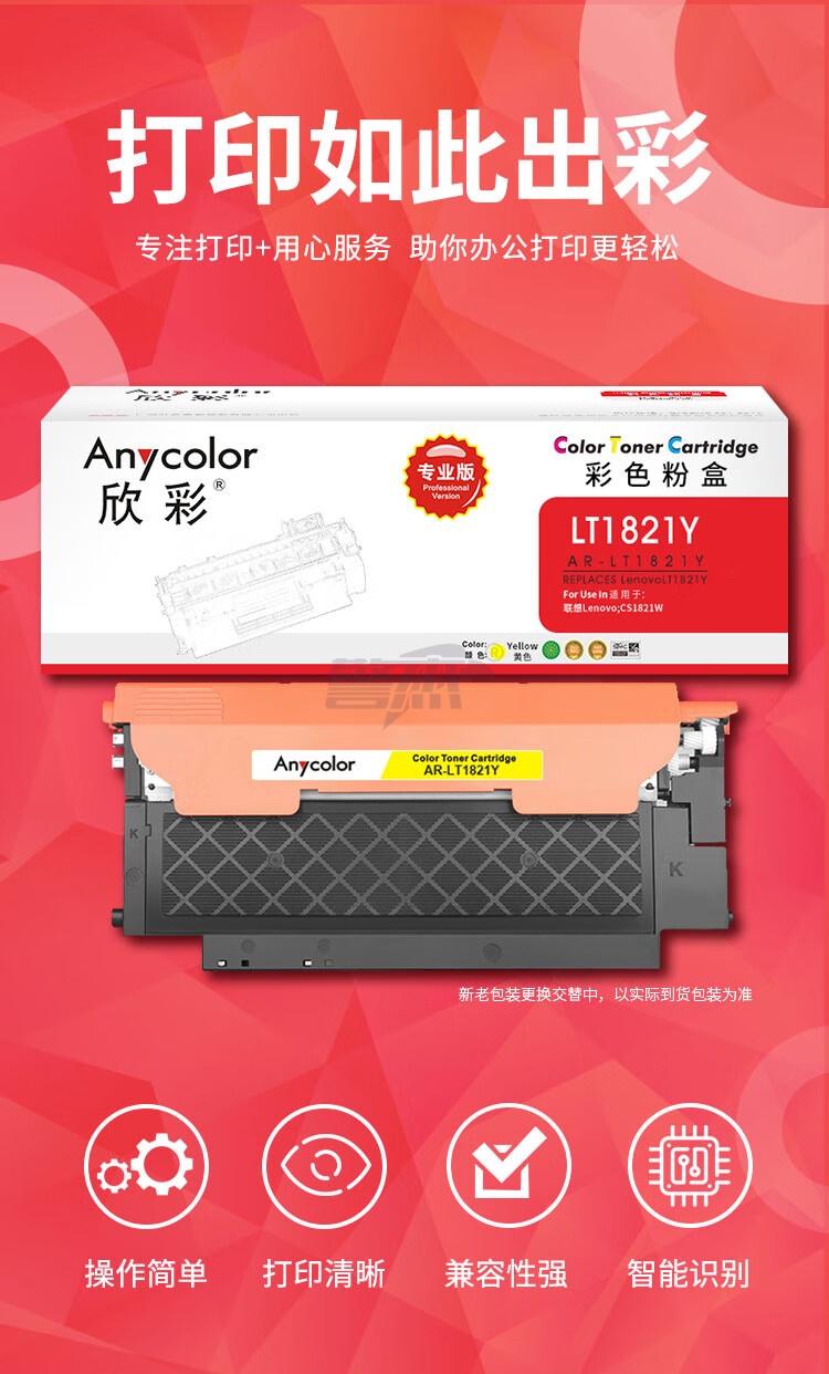 产品名称 : 欣彩 LT1821Y粉盒 专业版 AR-LT1821Y黄色 适用联想CS1831 CS1831W CM7120W CS1821 CS1821W 7110墨粉盒