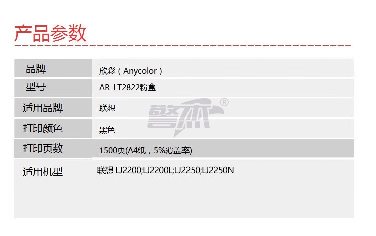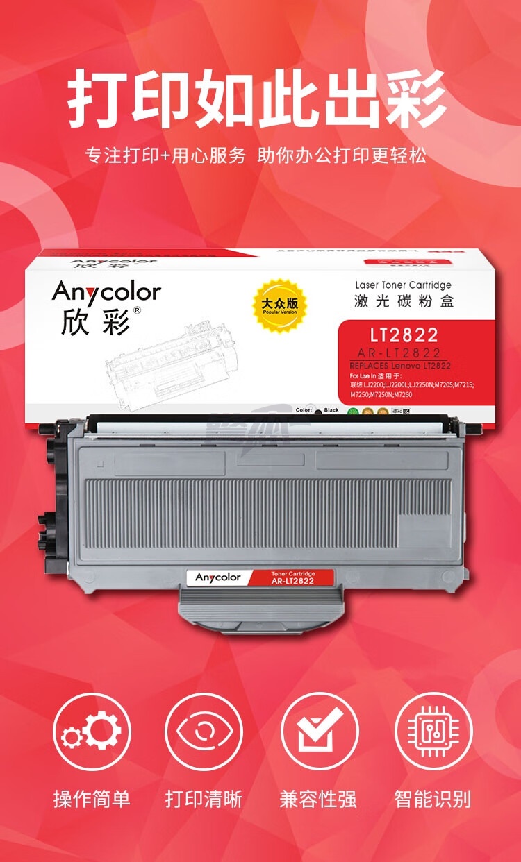 产品名称 : 欣彩(Anycolor)AR-LT2822碳粉盒 大众版 LT2822粉盒 适用联想LJ2200 LJ2200L LJ2250N M7205 M7215 M7250