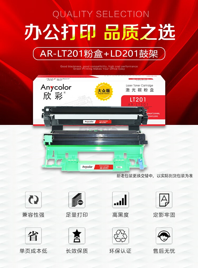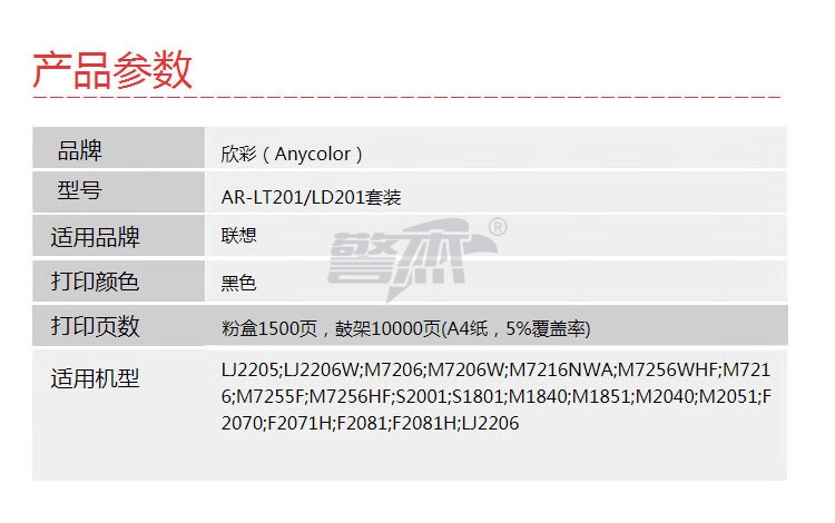 产品名称 : 欣彩 LT201粉盒+LD201鼓架 大众版 硒鼓套装 适用联想 S1801 M7206 M7206W LJ2205 2206W M1851 M7255F