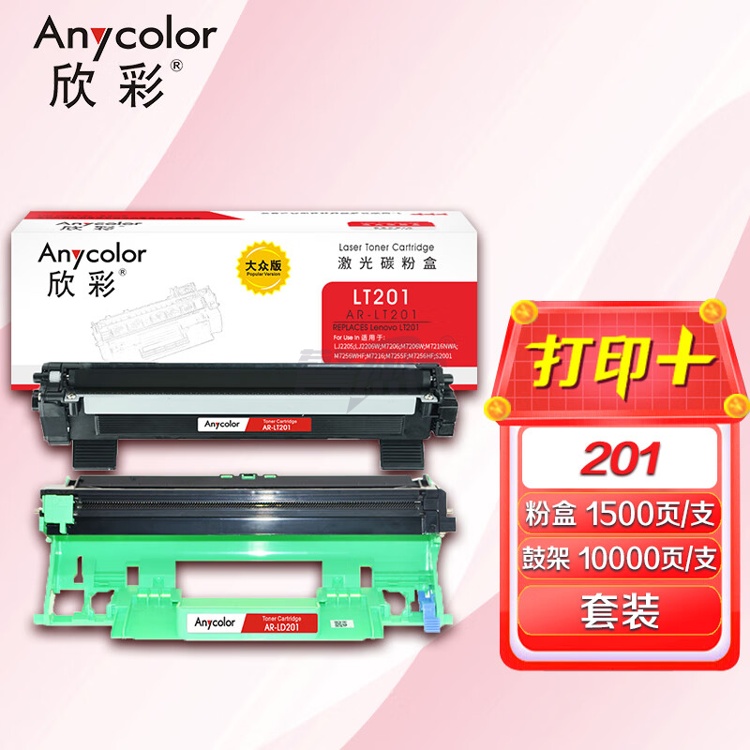 欣彩 LT201粉盒+LD201鼓架 大众版 硒鼓套装 适用联想 S1801 M7206 M7206W LJ2205 2206W M1851 M7255F