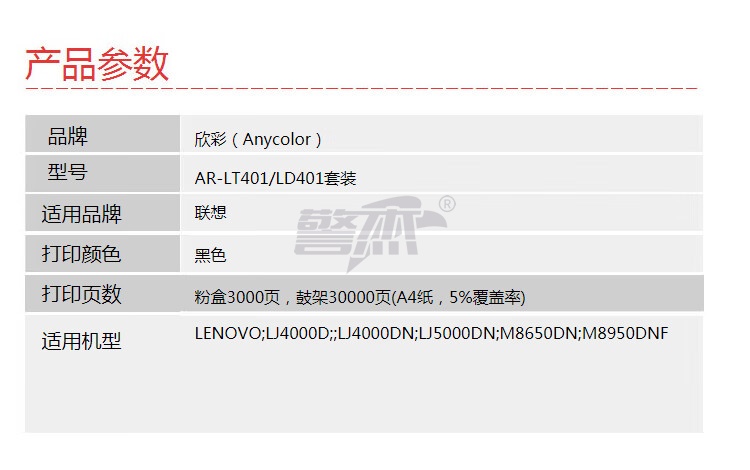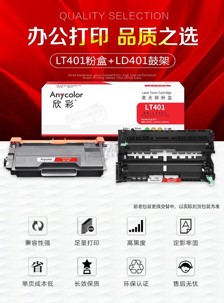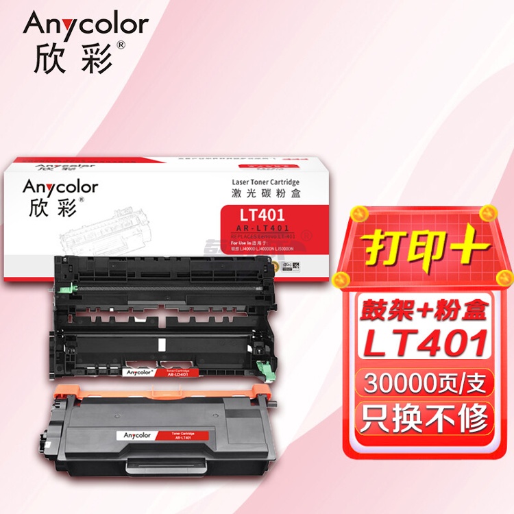 产品名称 : 欣彩 LT401粉盒+LD401鼓架 硒鼓套装 适用联想LENOVO LJ4000D LJ4000DN LJ5000DN M8650DN M8950DNF