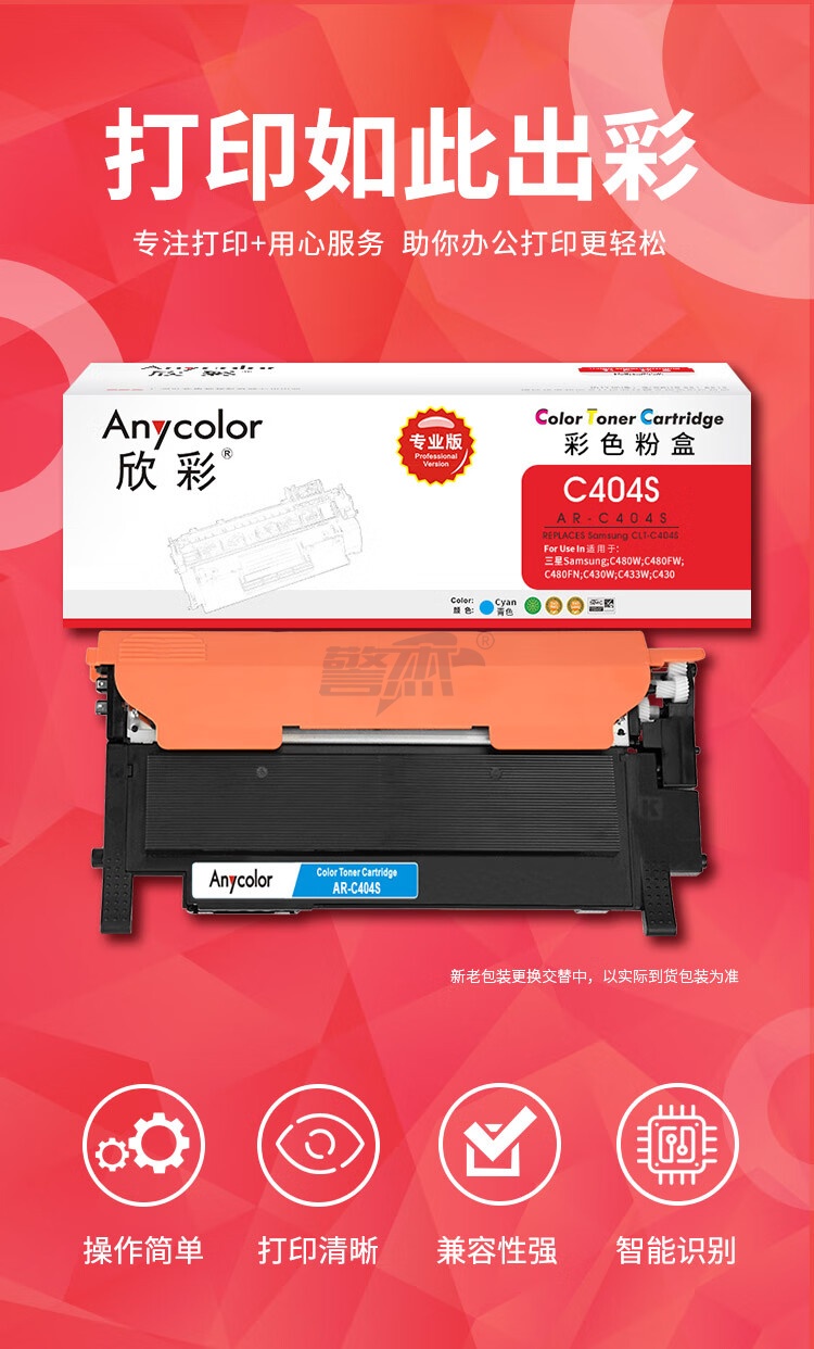 产品名称 : 欣彩AR-C404S蓝色粉盒 专业版 适用三星CLT-C404S C430 C430W C480 C480W C480FW C480FN激光打印机