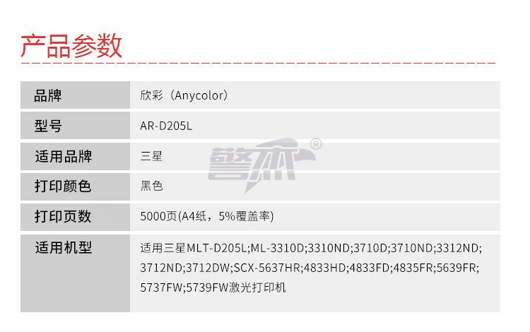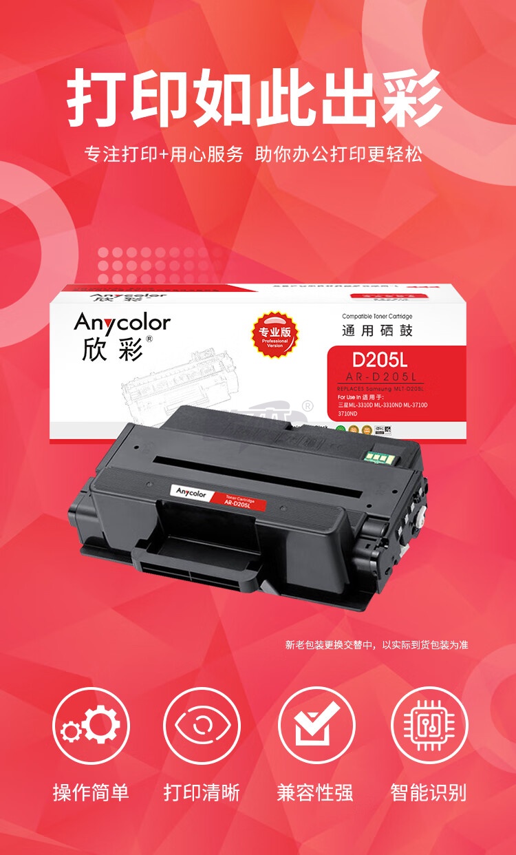 产品名称 : 欣彩AR-D205L硒鼓 专业版大容量5K 适用三星MLT-D205L ML-3310D 3310ND 3710D 3710ND 3312ND 3712激光打印机
