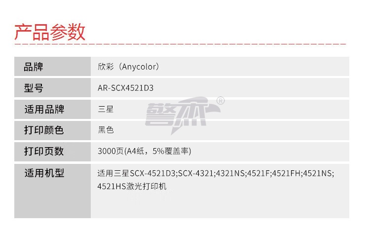 产品名称 : 欣彩AR-SCX4521D3硒鼓 专业版3K 适用三星SCX-4521D3 SCX-4321 4321NS 4521F 4521FH 4521NS激光打印机