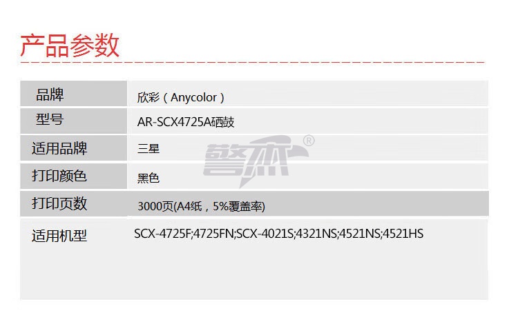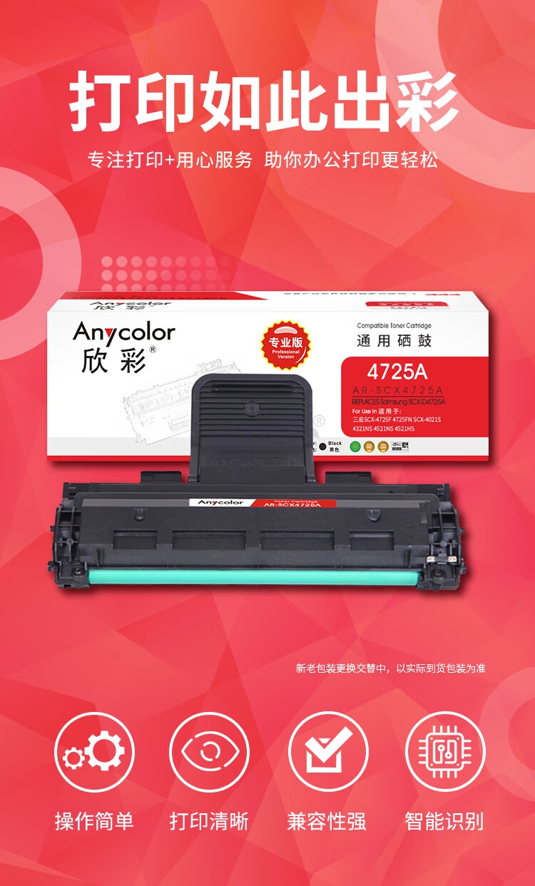 产品名称 : 欣彩 SCX-D4725A硒鼓 专业版 AR-SCX4725A 3K 适用三星SCX-4725F 4725FN SCX-4021S 4321NS 4521NS 4521HS