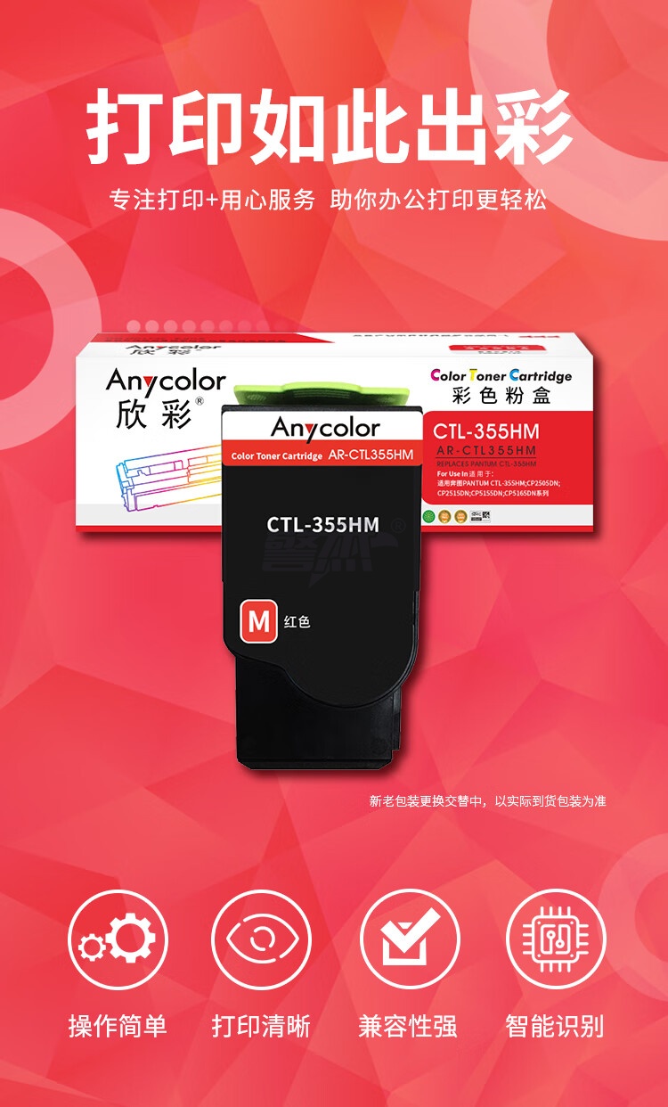 产品名称 : 欣彩AR-CTL355HM红色粉盒 大容量4K 适用奔图PANTUM CTL-355HM CP2505DN CP2515DN CP5155DN CP5165DN系列