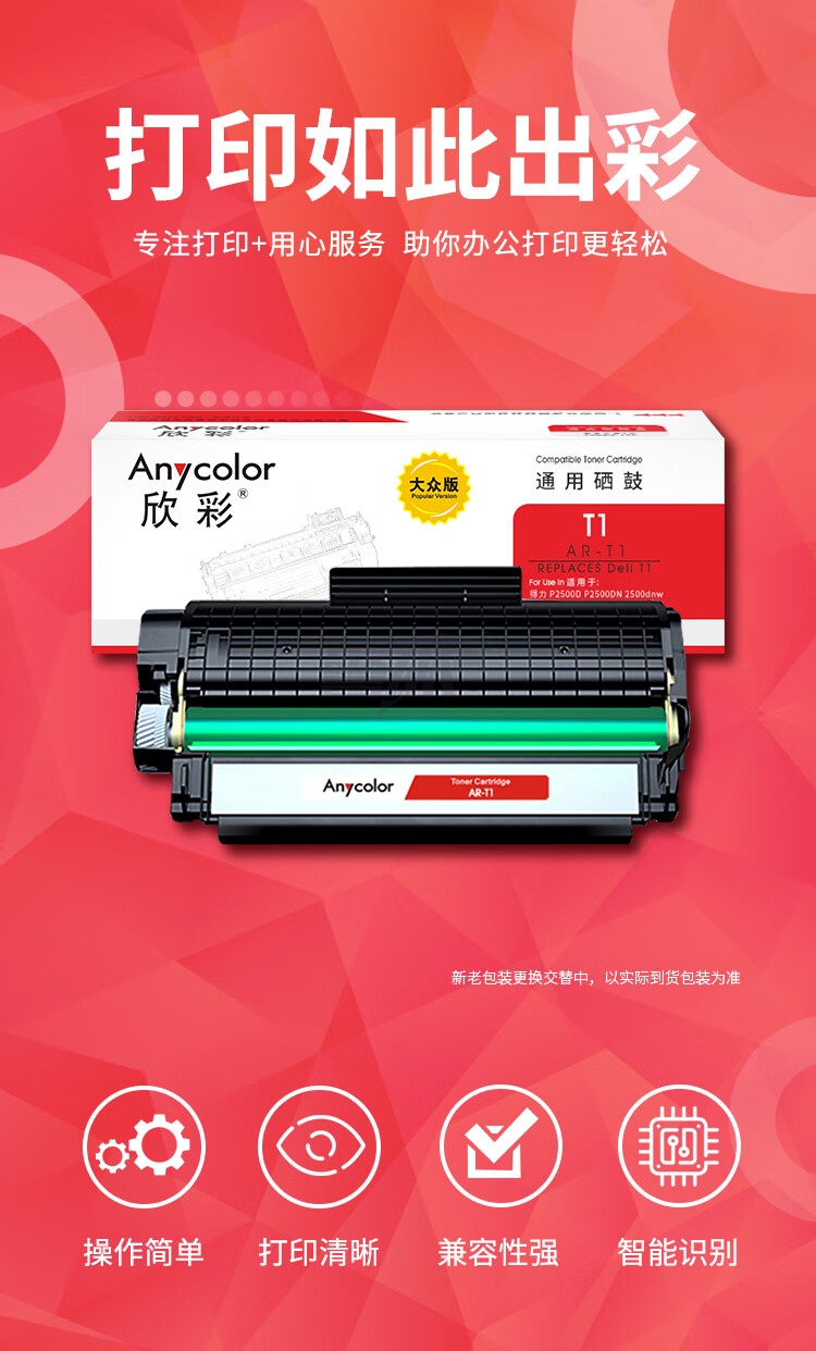 产品名称 : 欣彩AR-T1硒鼓 大众版黑色 适用得力T1 P2500D P2500DN P2500DW P2500DNW M2500D DW ADNW打印机