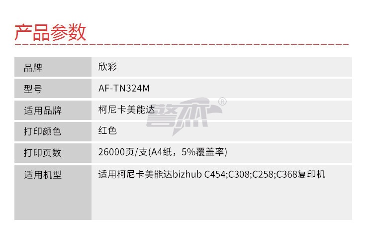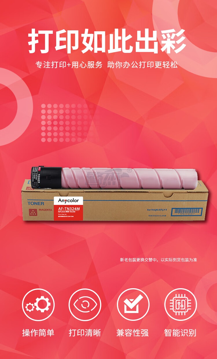 产品名称 : 欣彩AF-TN324M红色粉盒 TN324 适用柯尼卡美能达bizhub C454 C308 C258 C368复印机