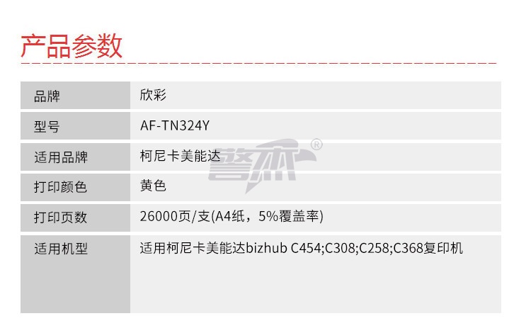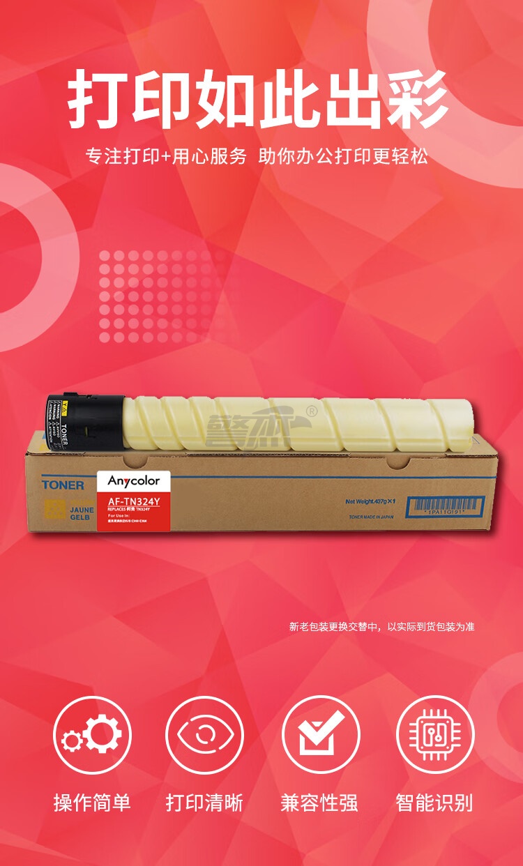 产品名称 : 欣彩AF-TN324Y黄色粉盒 TN324 适用柯尼卡美能达bizhub C454 C308 C258 C368复印机