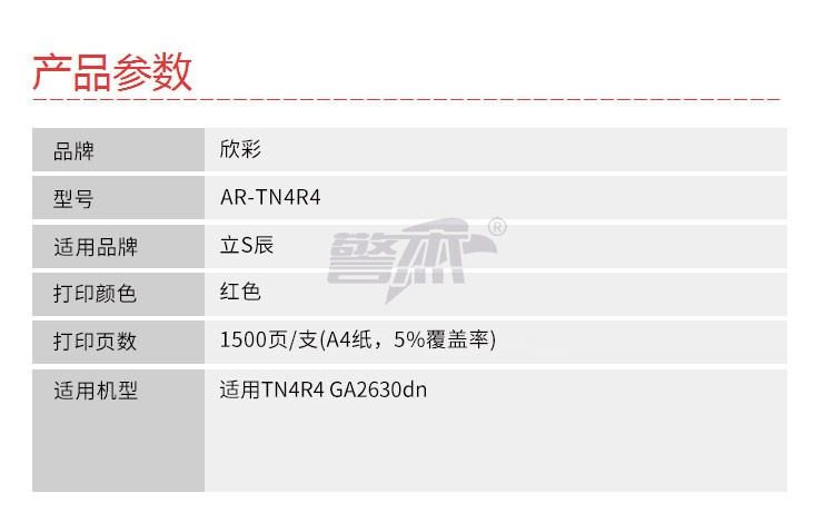 产品名称 : 欣彩AR-TN4R4红色粉盒 1.5K 适用TN4R4 GA2630dn黑红双色激光打印机