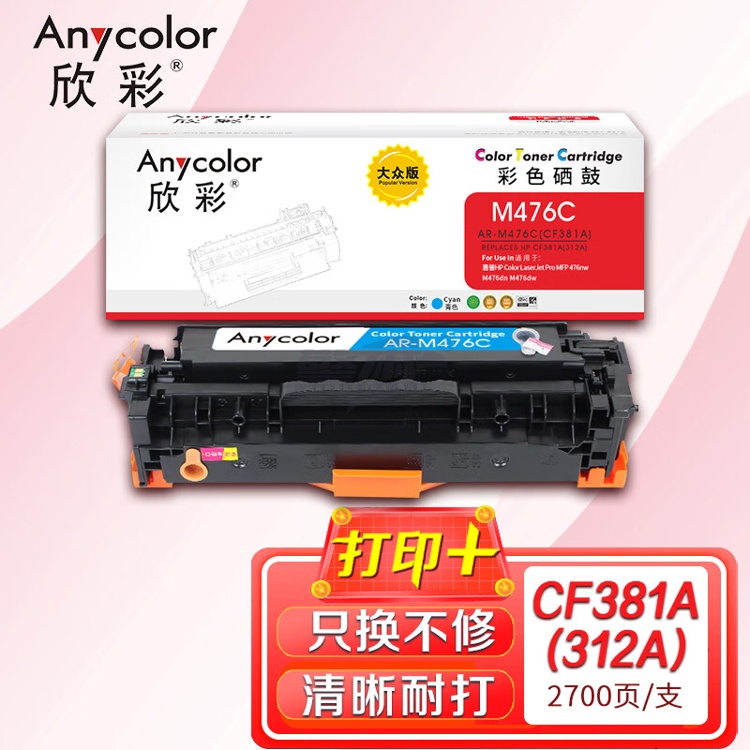 产品名称 : 欣彩 CF381A硒鼓 大众版 AR-M476C 312A硒鼓 蓝色 适用惠普HP Color LaserJet Pro MFP 476nw M476dn M476dw