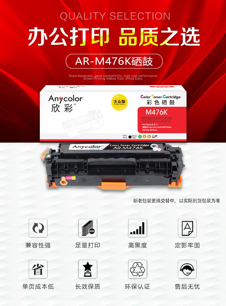 产品名称 : 欣彩 CF380A硒鼓 大众版 AR-M476K 312A硒鼓 黑色 适用惠普HP Color LaserJet Pro MFP 476nw M476dn M476dw