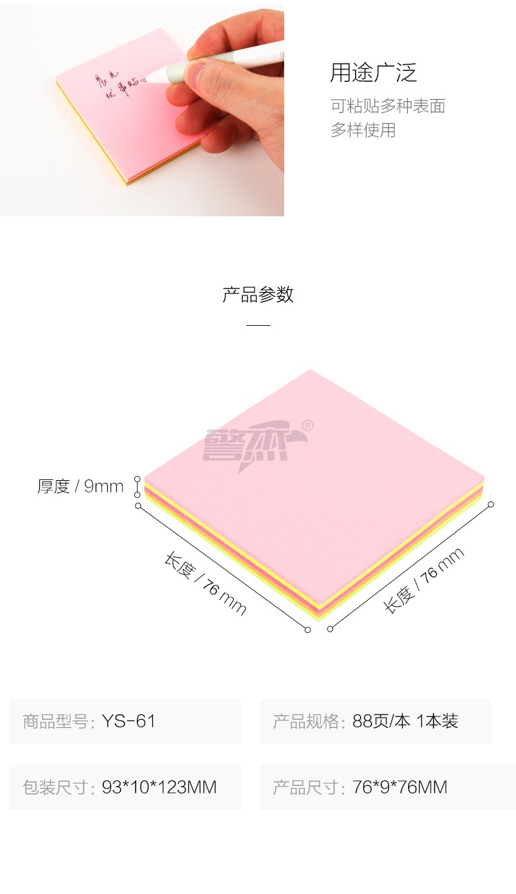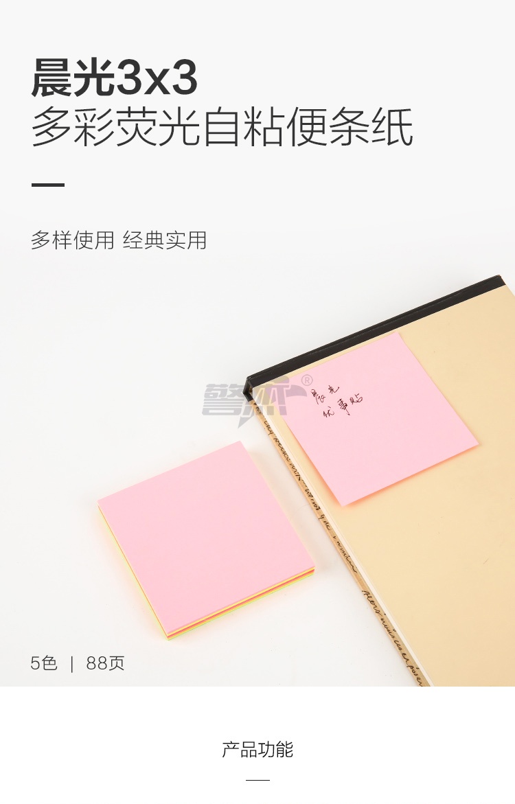 产品名称 : 晨光(M&G) 88张荧光5色便利贴 粘性标签贴留言贴 76*76mm记事贴优事贴便签本子 单本装YS-61