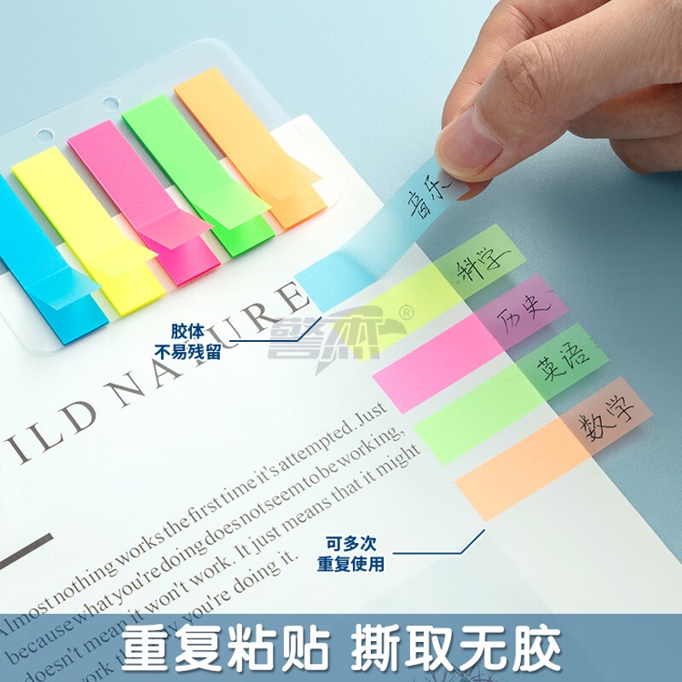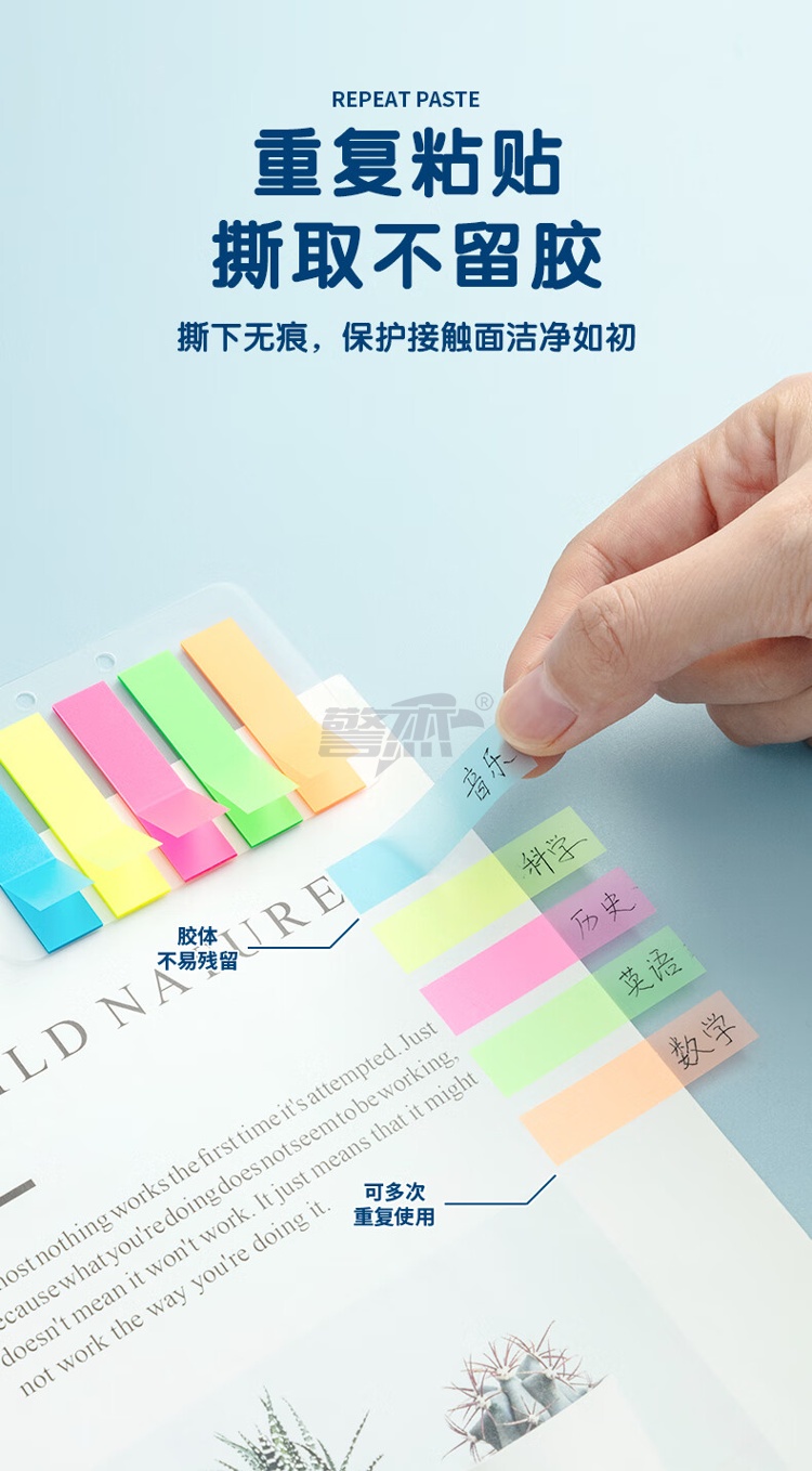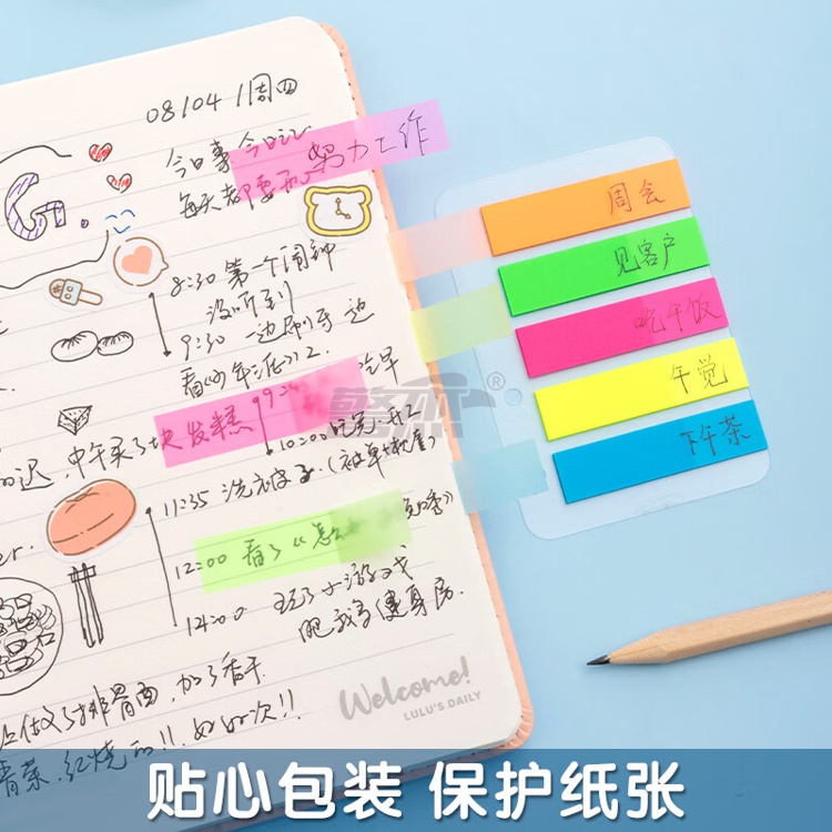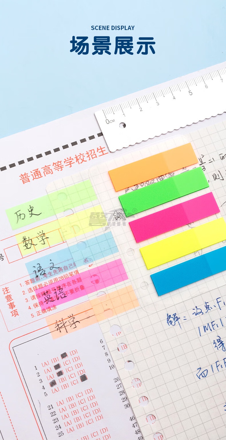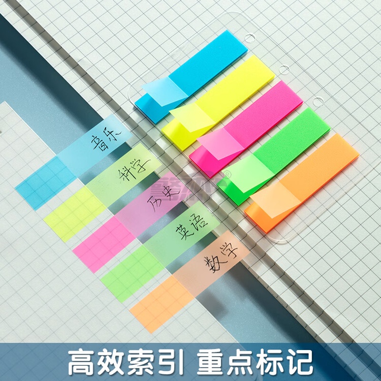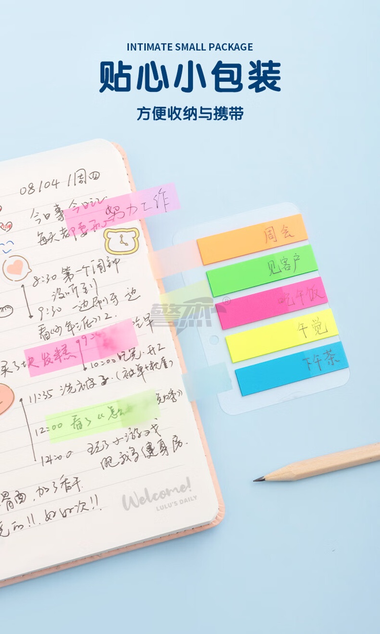 产品名称 : 晨光(M&G)文具5色100枚PET荧光便利贴 粘性标签贴姓名贴 记事留言贴优事贴便签本子 20页/条YS-20