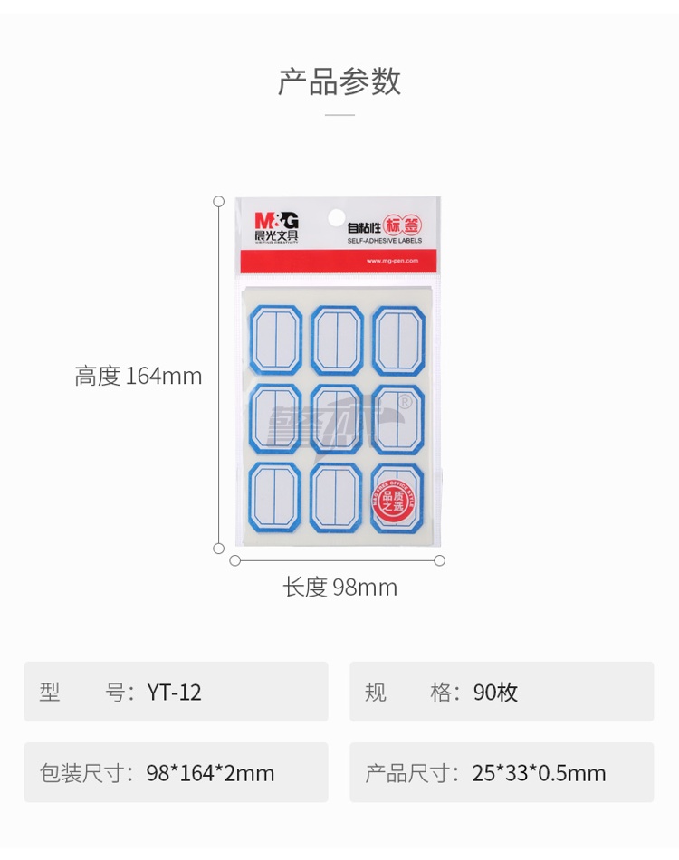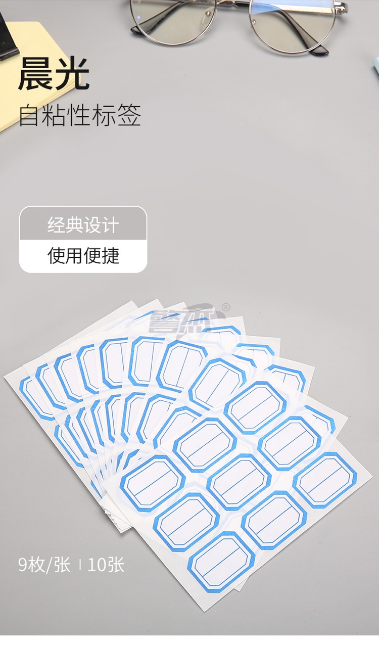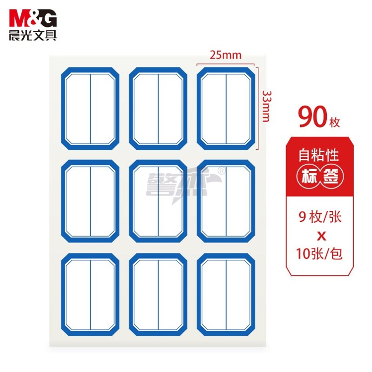 产品名称 : 晨光(M&G)文具25*33mm/90枚蓝框自粘性标签贴纸 便利便签条 百事贴 价格条标签贴 9枚/张YT-12