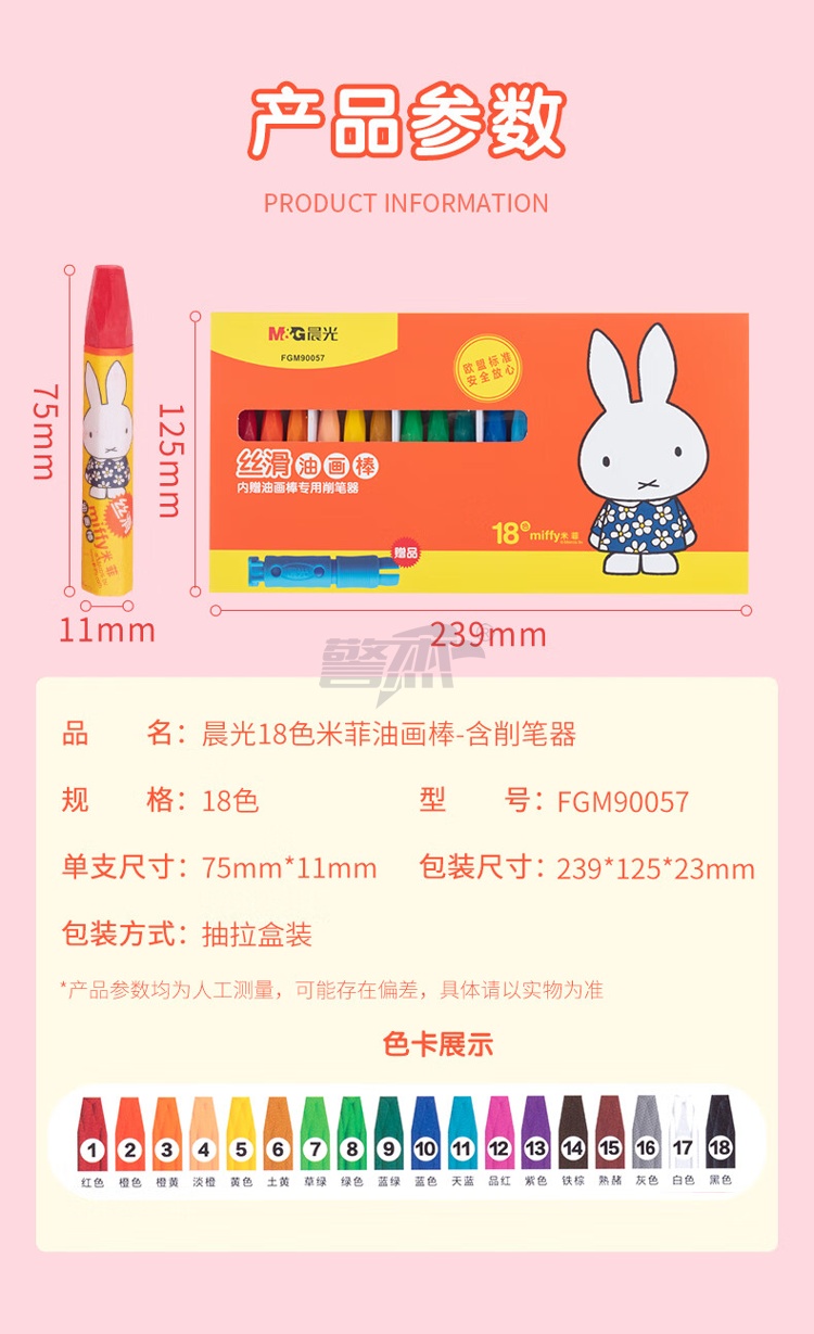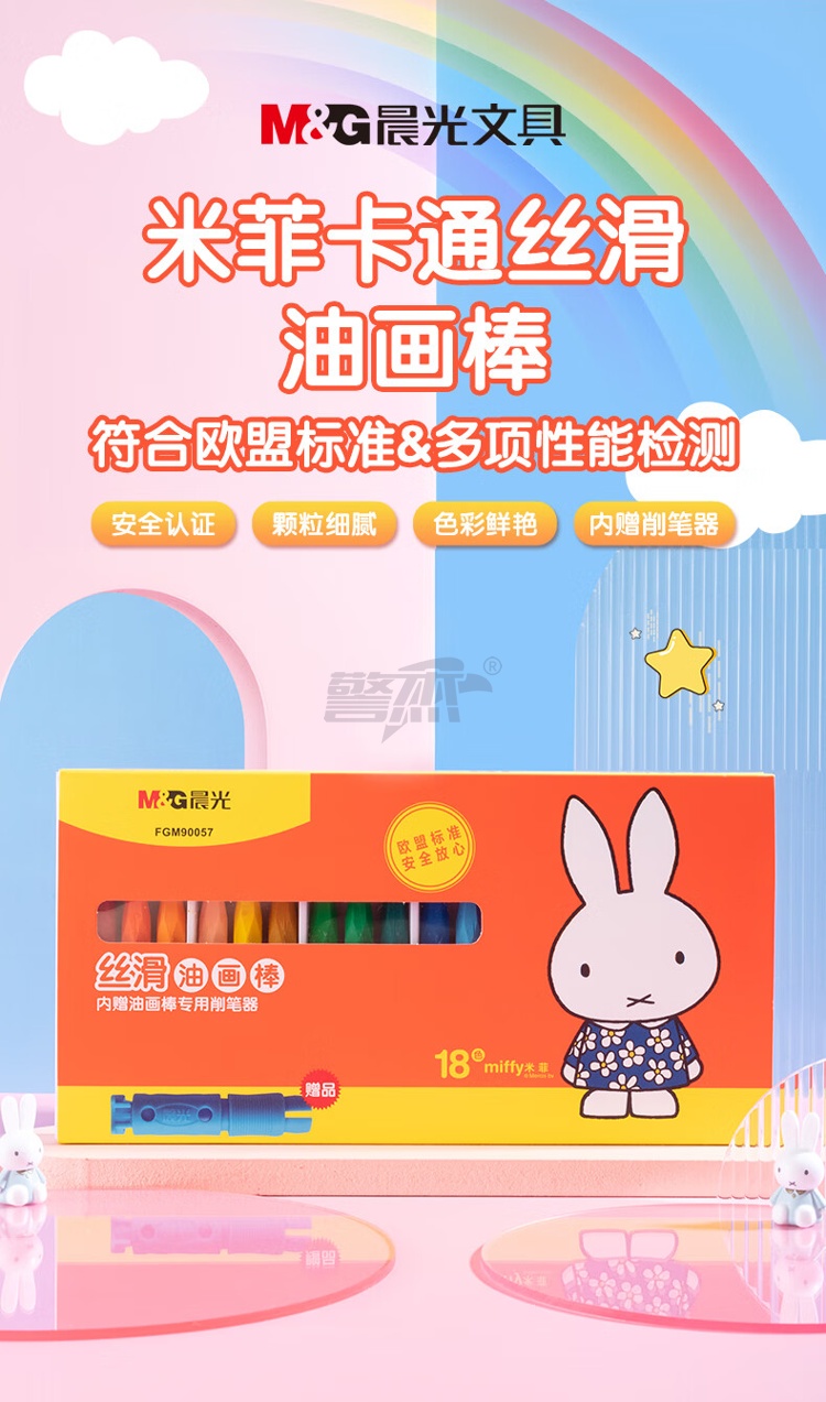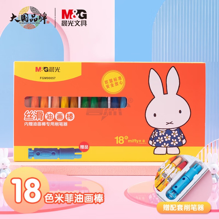 产品名称 : 晨光(M&G)文具18色丝滑六角油画棒蜡笔 欧盟安全配方 儿童涂鸦笔 米菲系列油性蜡笔FGM90057