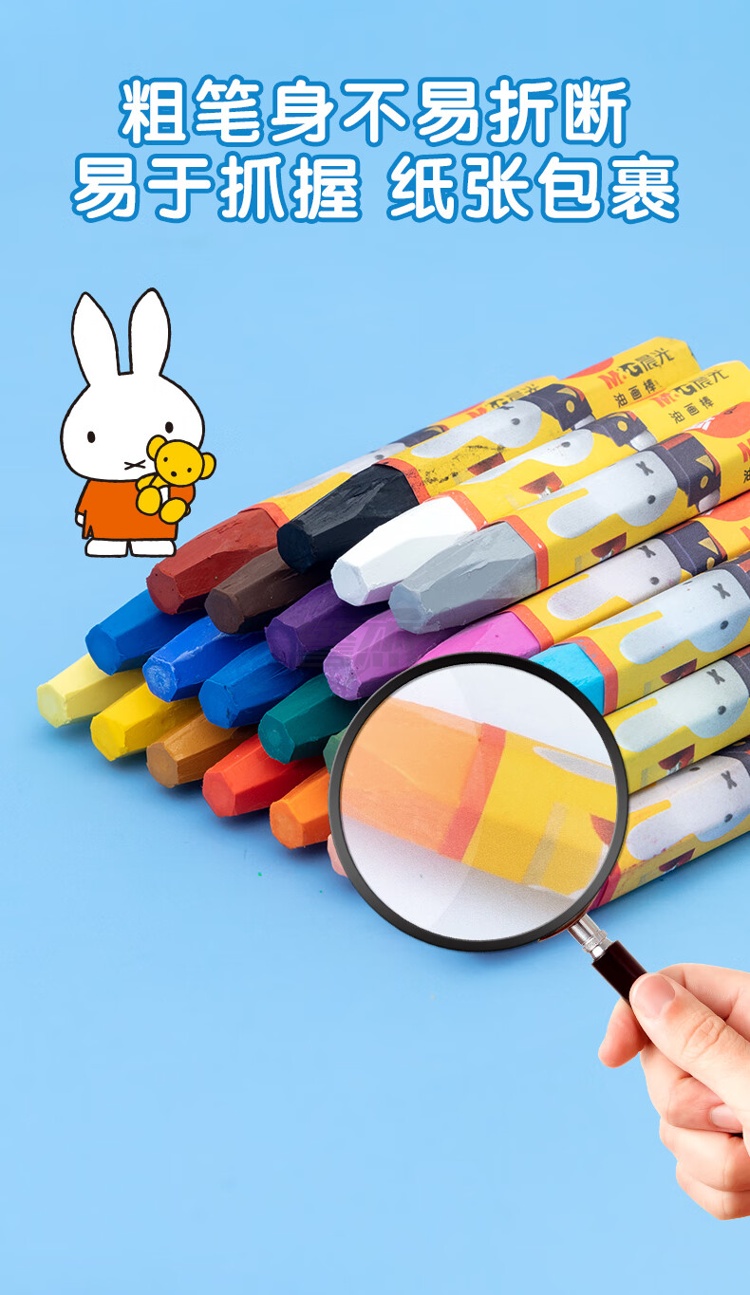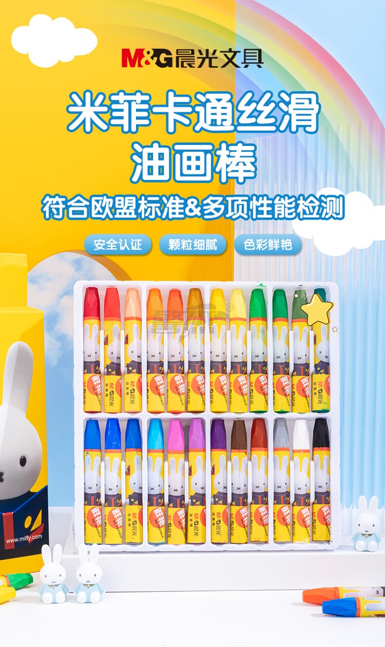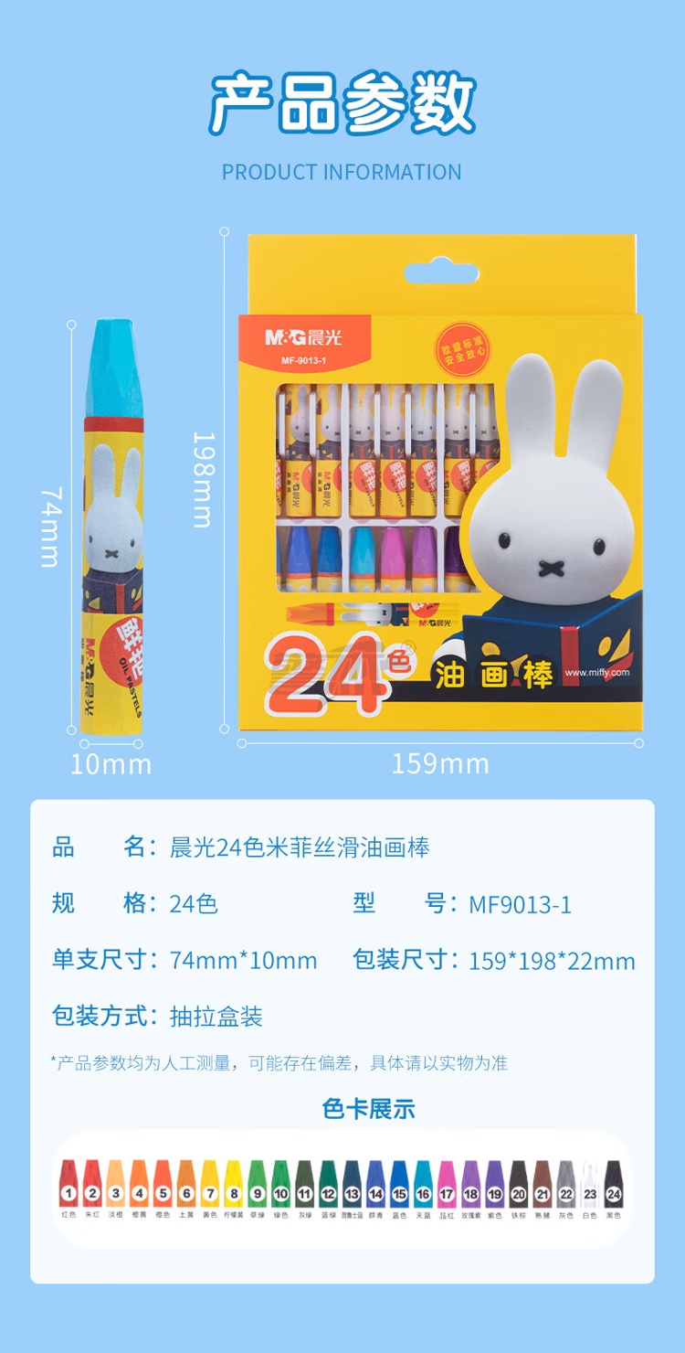 产品名称 : 晨光(M&G)文具24色卡通3D六角油画棒 儿童涂鸦绘画笔 米菲系列蜡笔套装 24支/盒MF9013考试用品