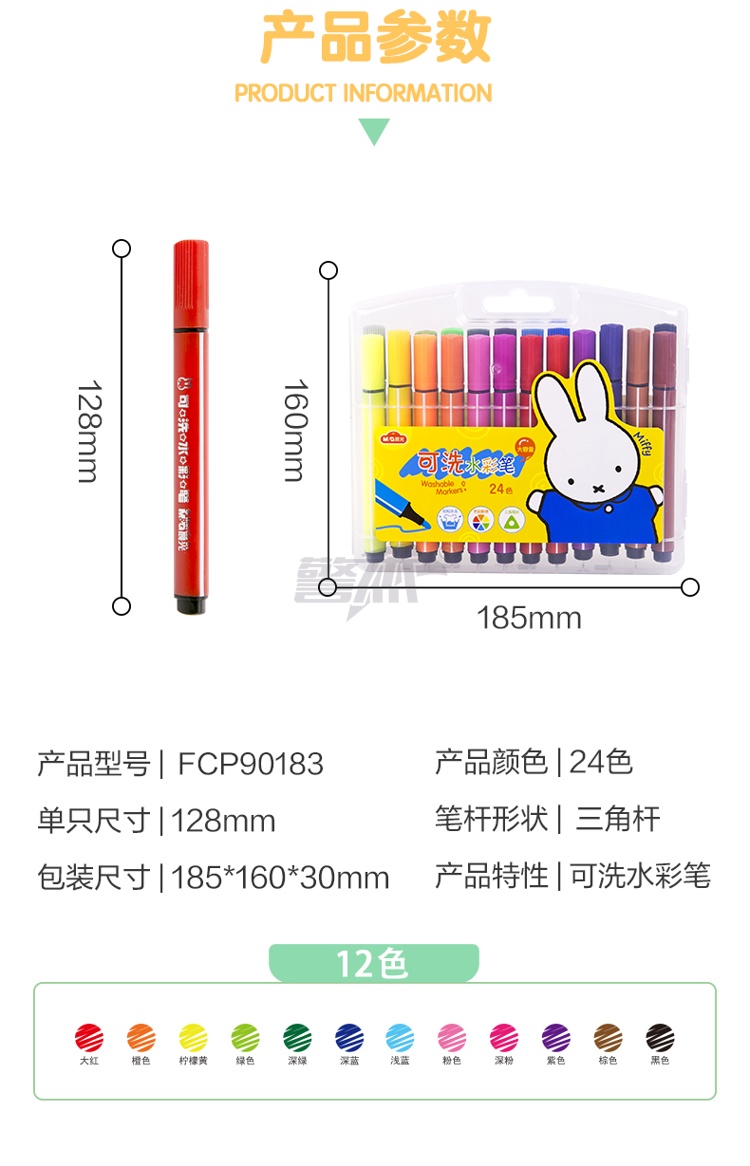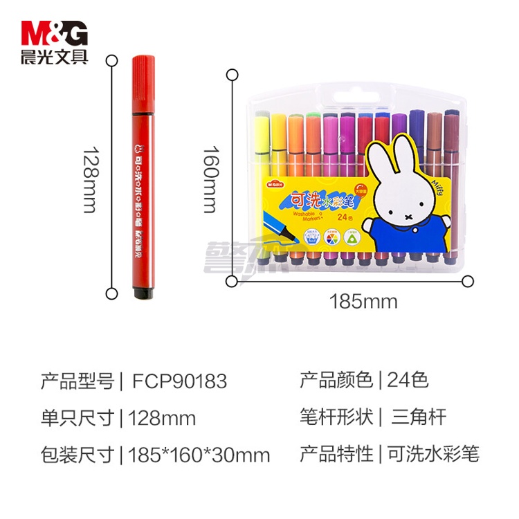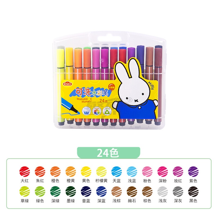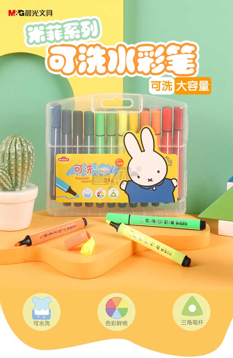 产品名称 : 晨光(M&G) 24色三角杆水彩笔 可水洗绘画彩笔 米菲系列儿童涂鸦画笔 24支/盒FCP90183考试用品