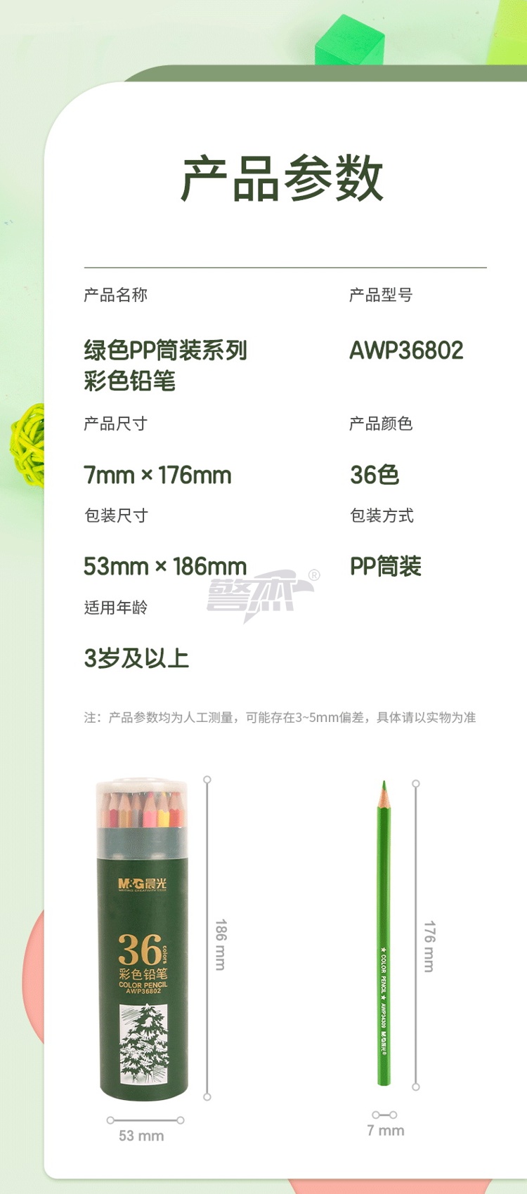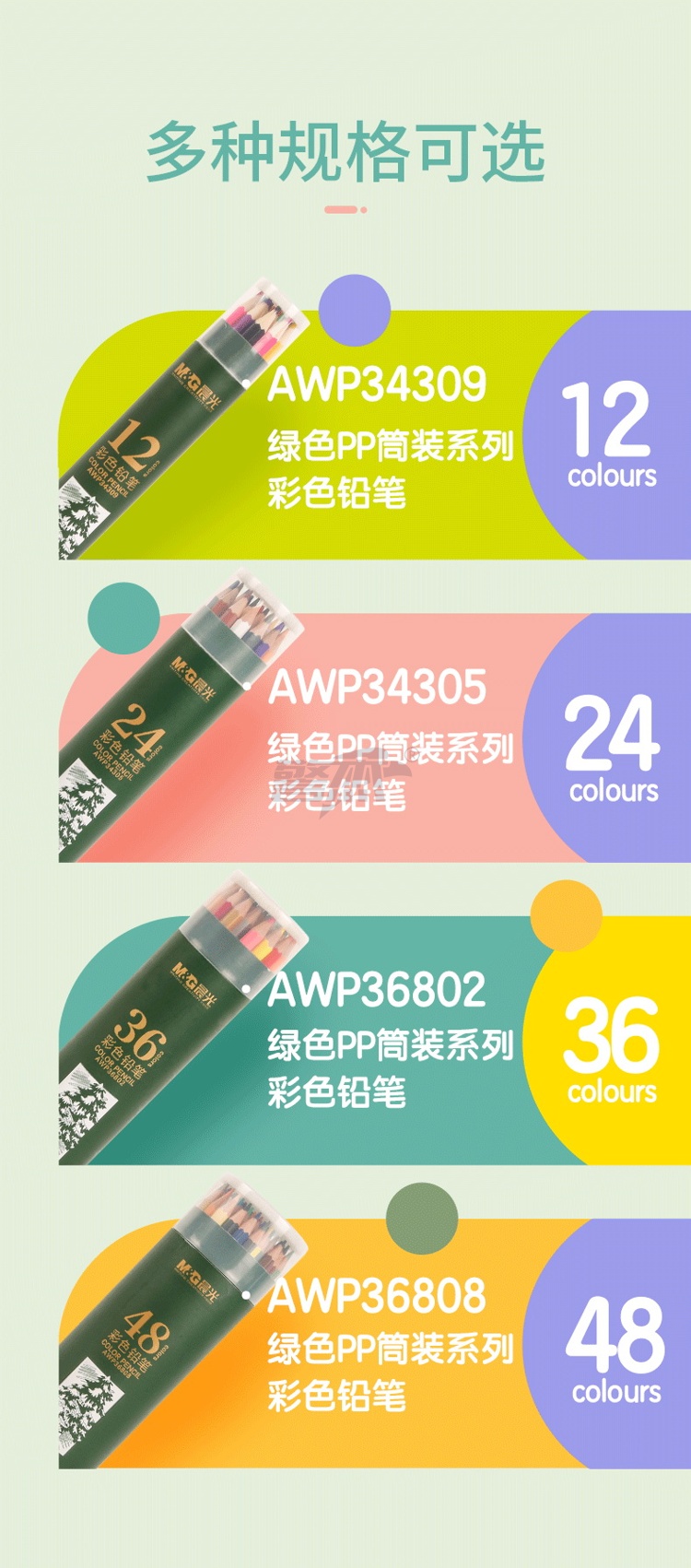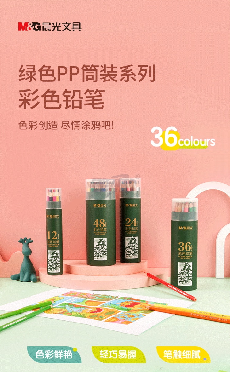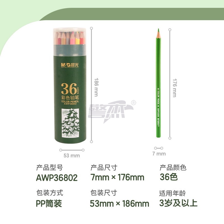 产品名称 : 晨光(M&G) 36色油性彩色铅笔 学生美术绘画填色笔 六角杆绿筒装AWP36802考试用品