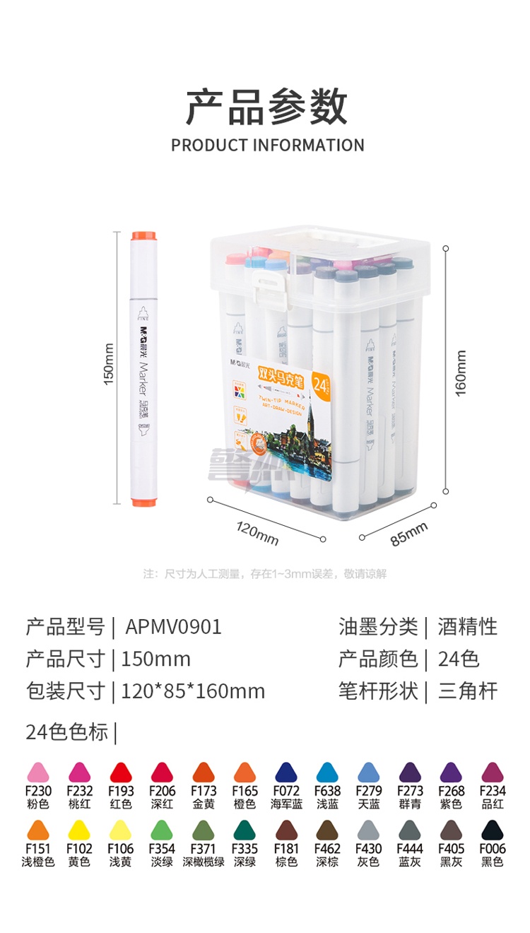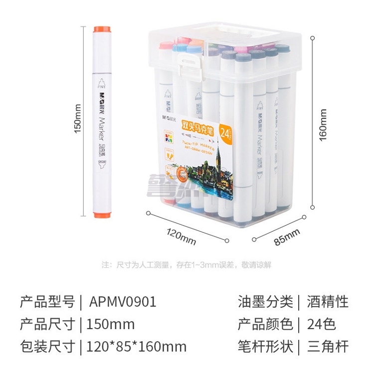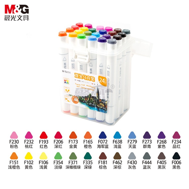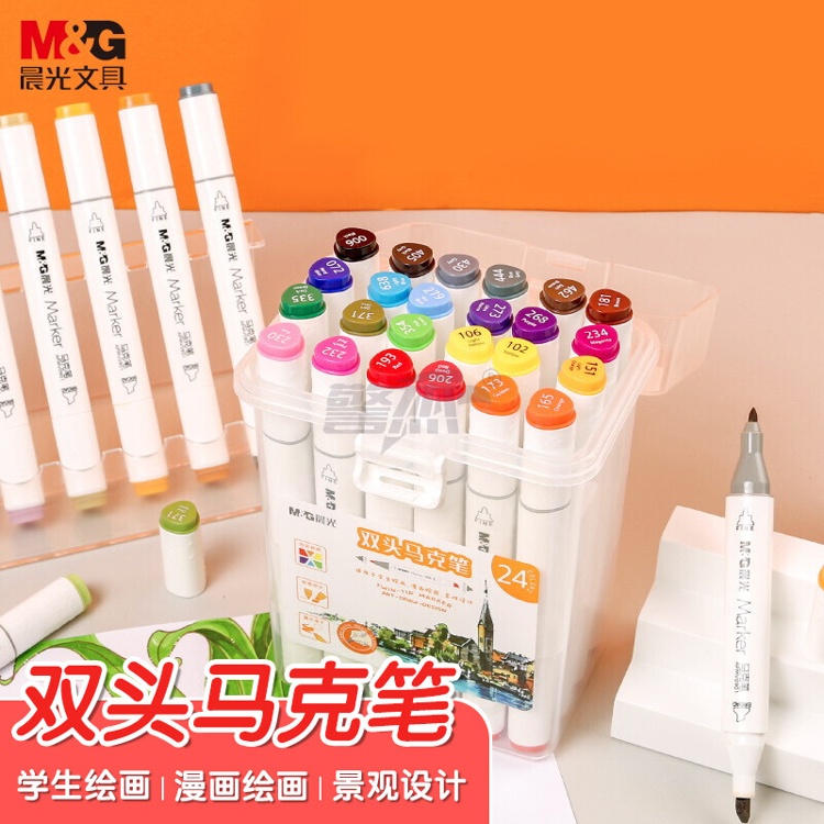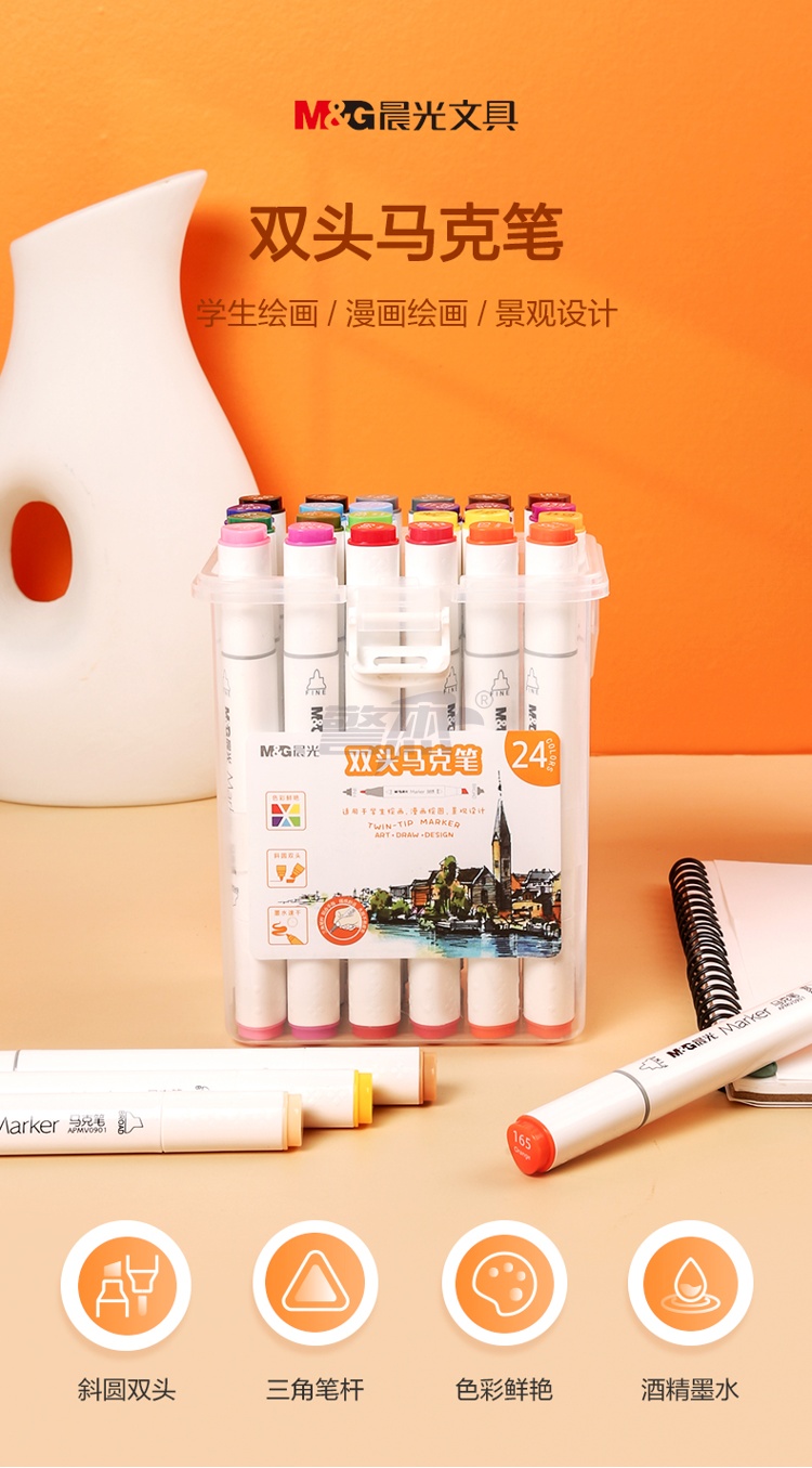 产品名称 : 晨光(M&G) 24色双头酒精性快干马克笔 纤维笔头水彩笔 绘画手绘涂鸦工具APMV0901考试用品