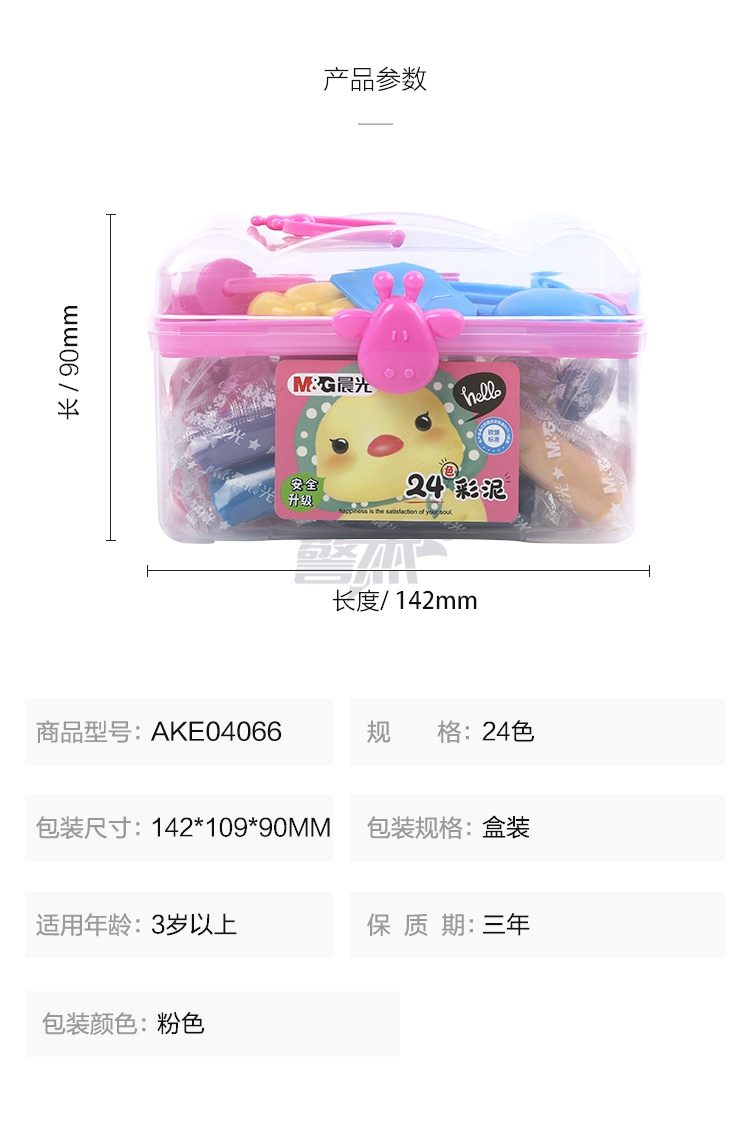产品名称 : 晨光(M&G) 24色盒装彩泥 可爱卡通 儿童手工DIY玩具 橡皮泥套装 AKE04066