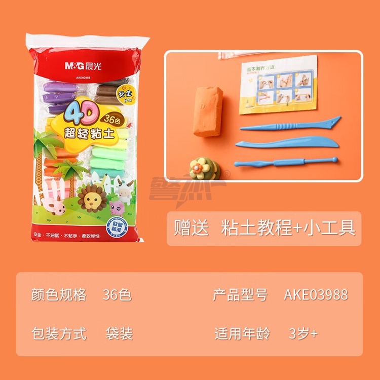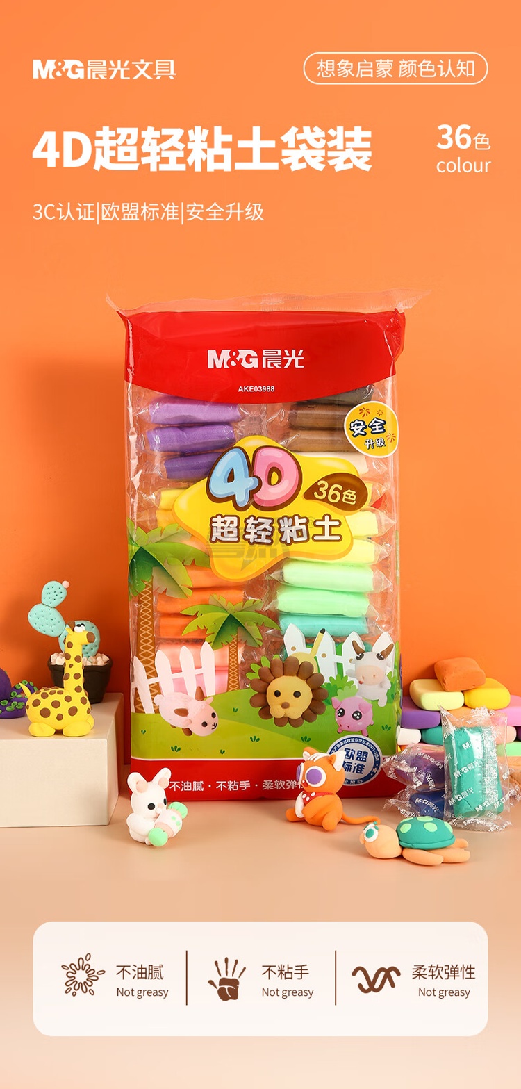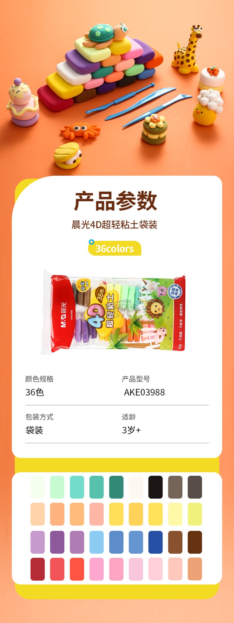 产品名称 : 晨光(M&G) 36色超轻粘土彩泥橡皮泥4D 儿童手工DIY玩具 袋装AKE03988