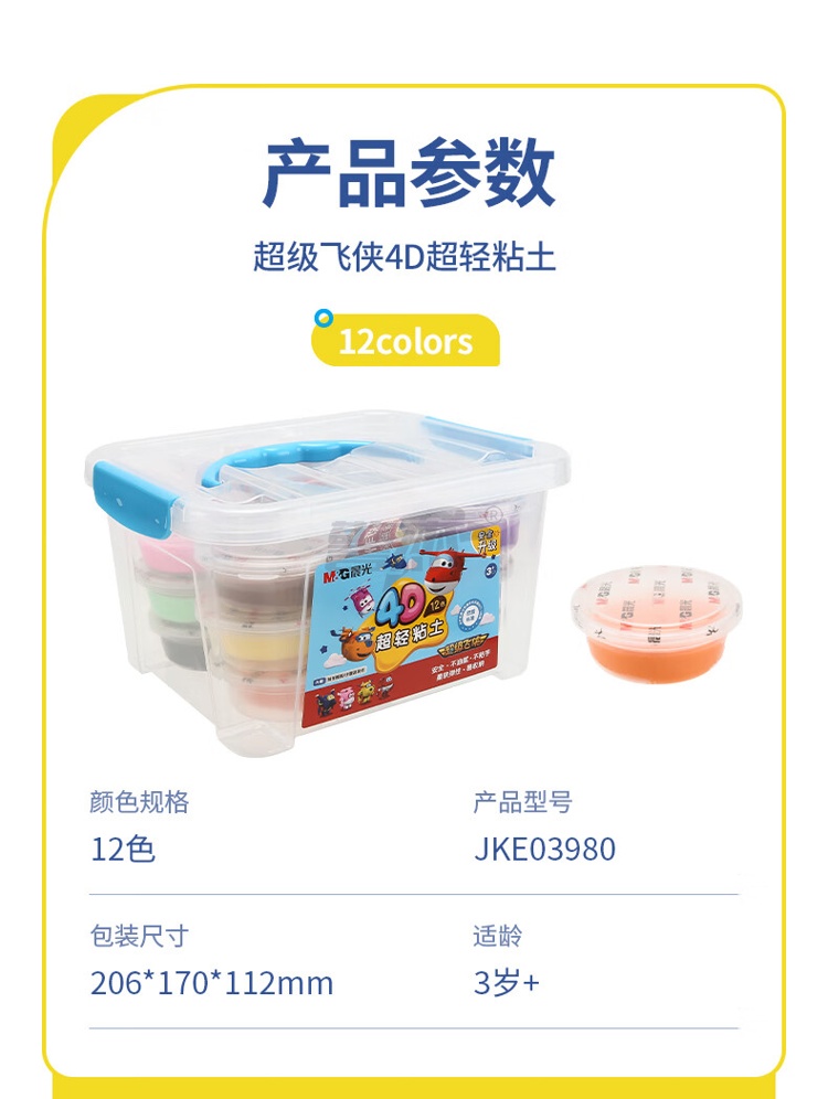 产品名称 : 晨光(M&G) 12色超轻粘土 彩泥橡皮泥4D 儿童手工DIY玩具 盒装易收纳JKE03980
