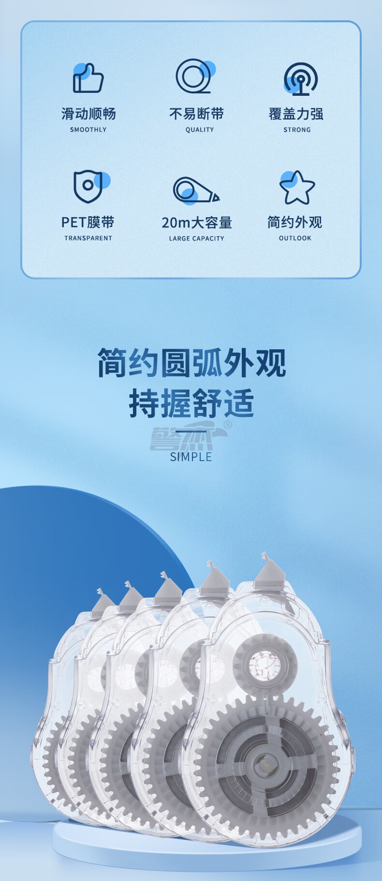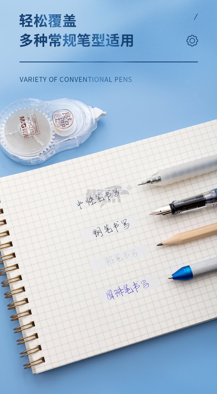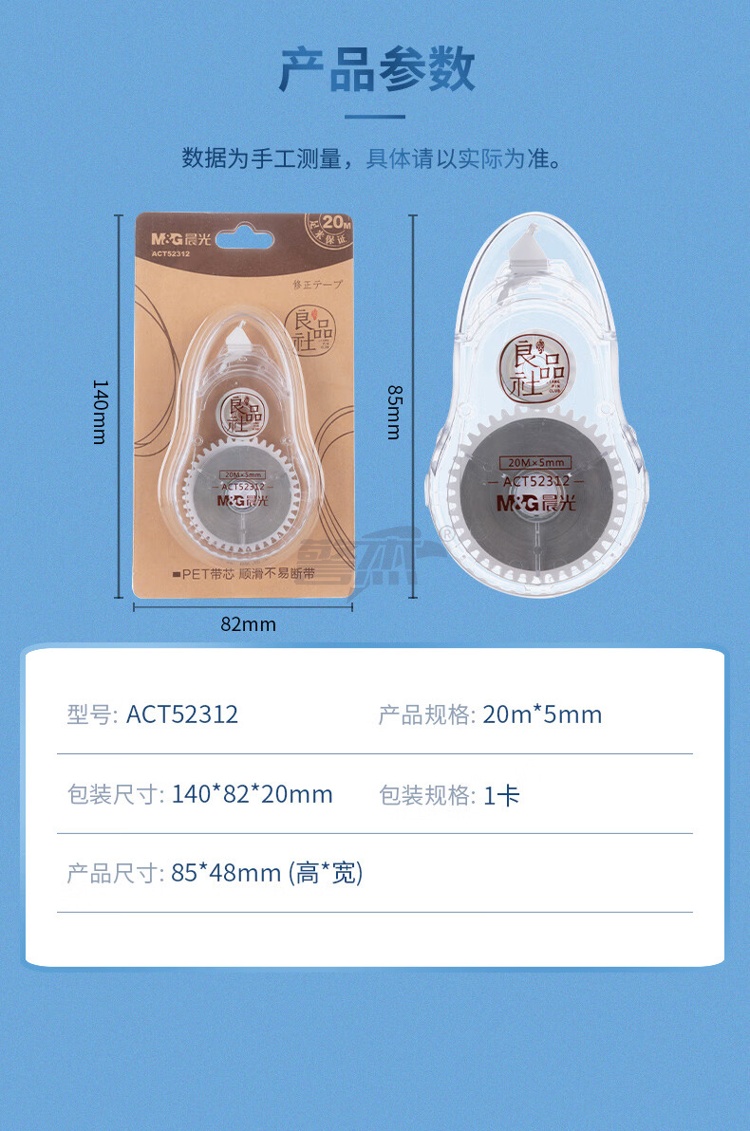 产品名称 : 晨光(M&G)文具20m*5mm/PET带芯修正带 学生大容量涂改带 良品社系列改正带 单支装ACT52312