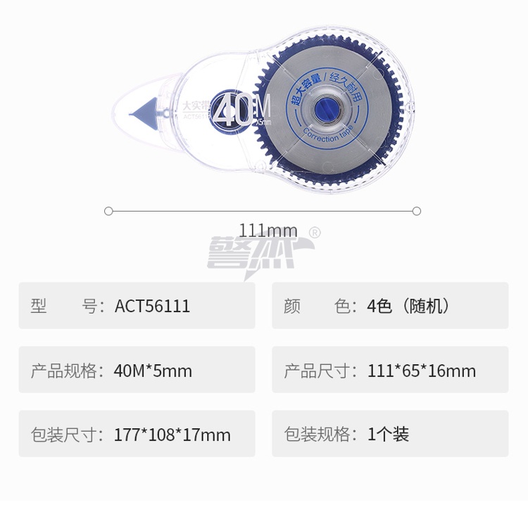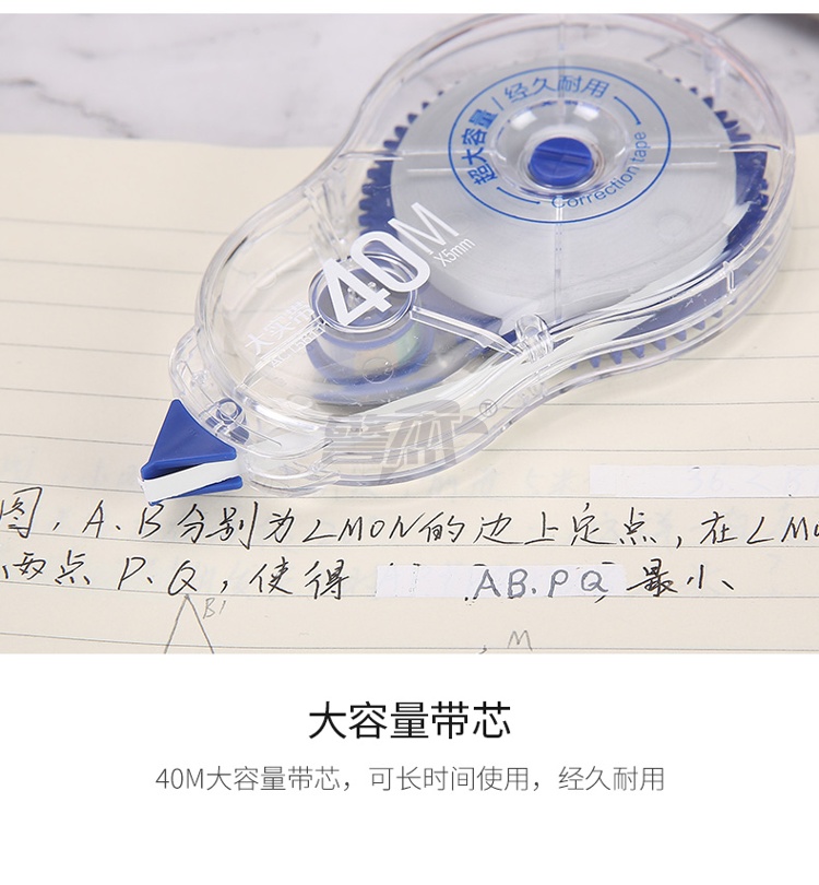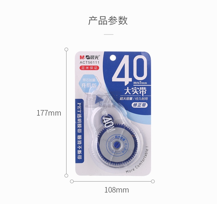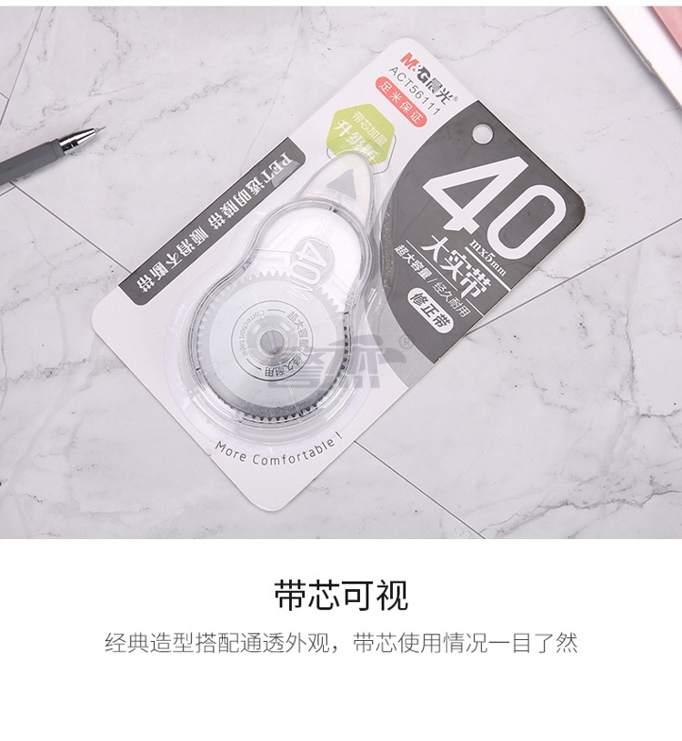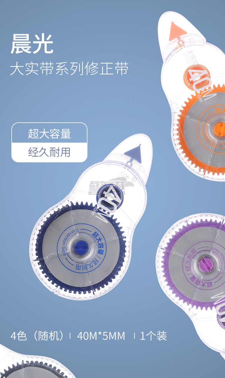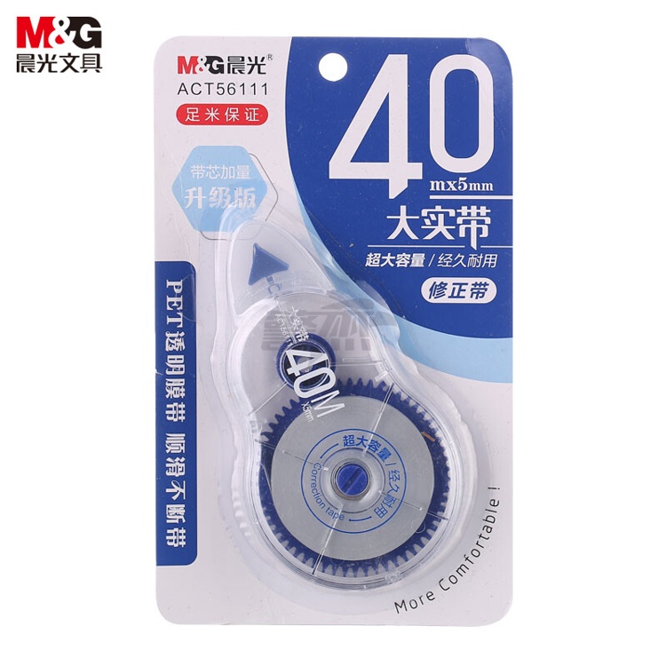 产品名称 : 晨光(M&G)文具40m*5mm/PET带芯修正带 学生大容量涂改带 大实带系列改正带 单支装颜色随机ACT56111