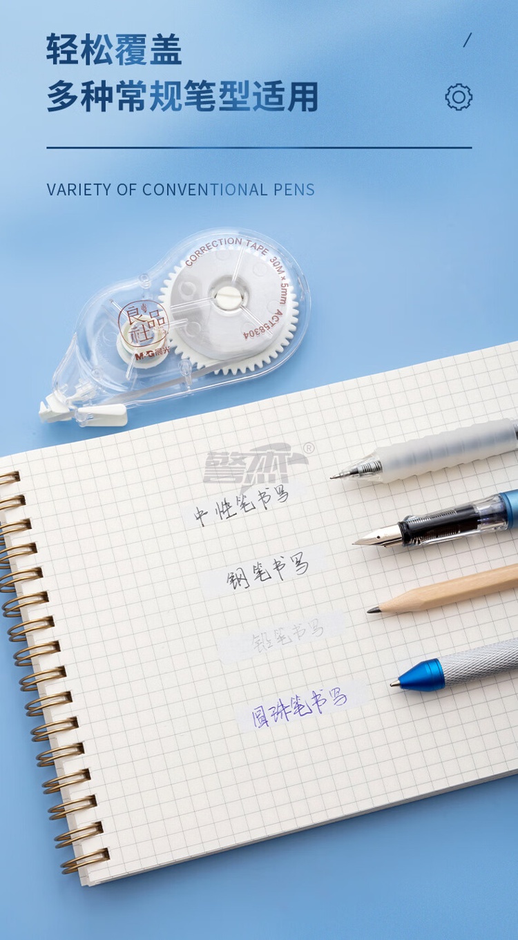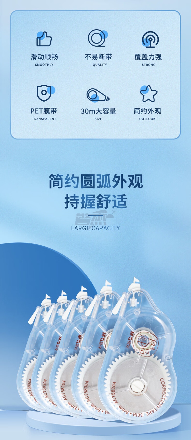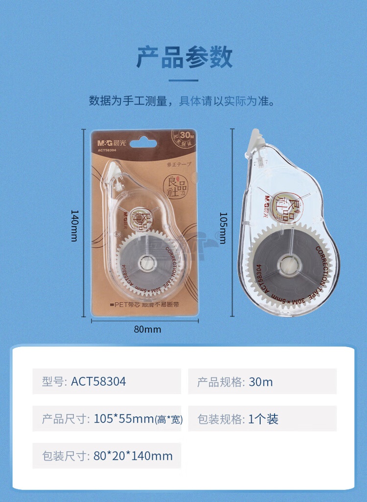 产品名称 : 晨光(M&G)文具30m*5mm白色带芯修正带 学生大容量涂改带 修正良品系列改正带 单支装ACT58304