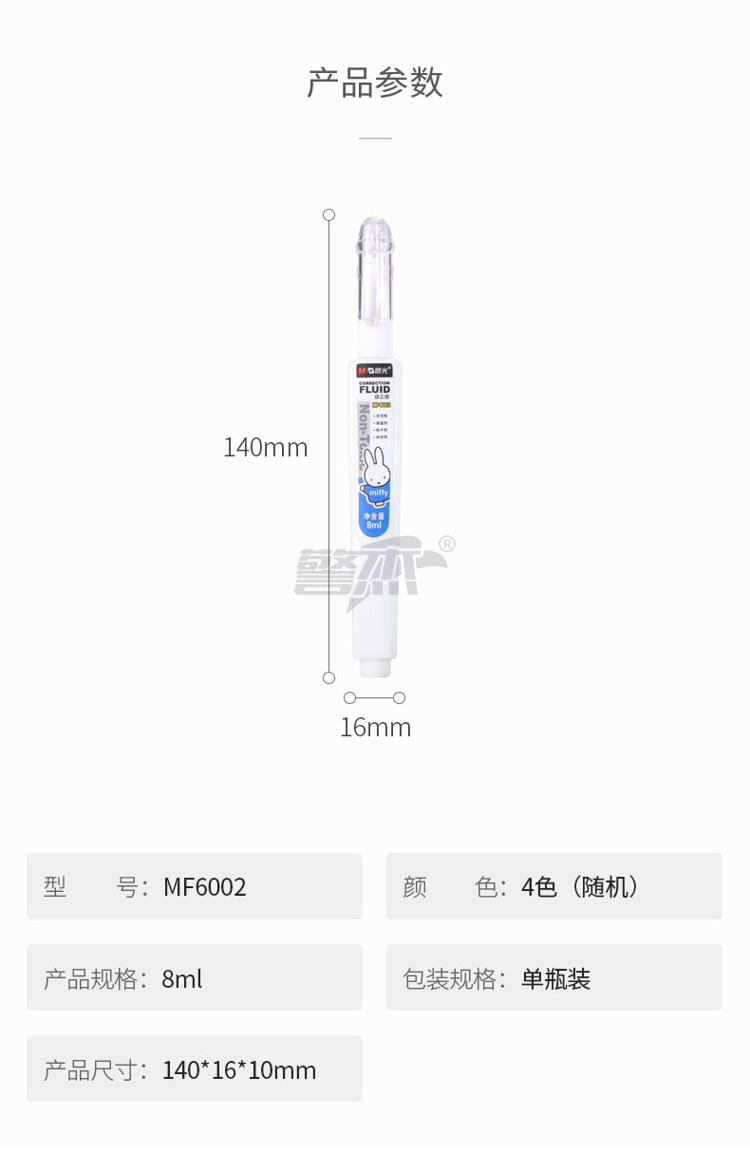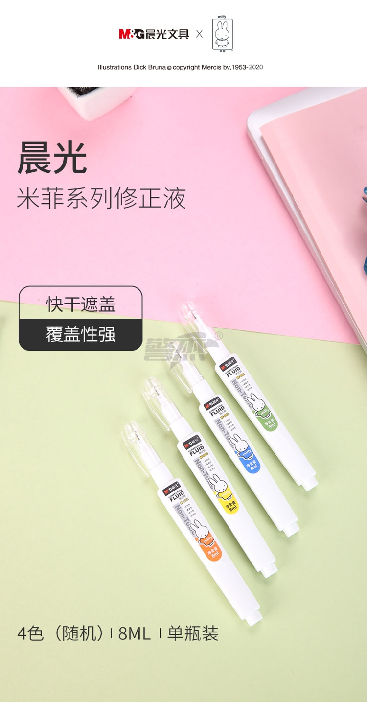 产品名称 : 晨光(M&G)文具8ml便携修正液 学生开学涂改液 改正液 米菲系列修正笔 单瓶装颜色随机MF6002