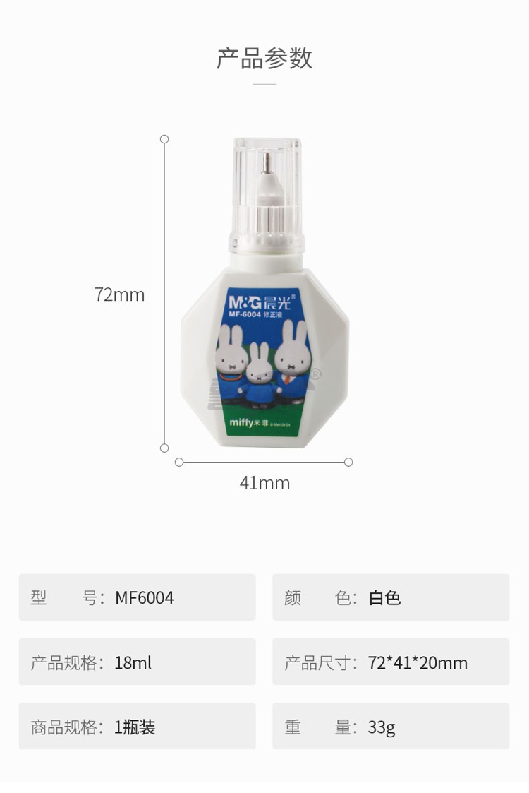 产品名称 : 晨光(M&G)文具18ml便携修正液 学生涂改液开学改正液 米菲系列修正笔 单支装MF6004