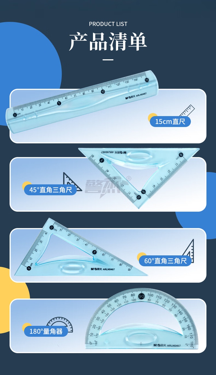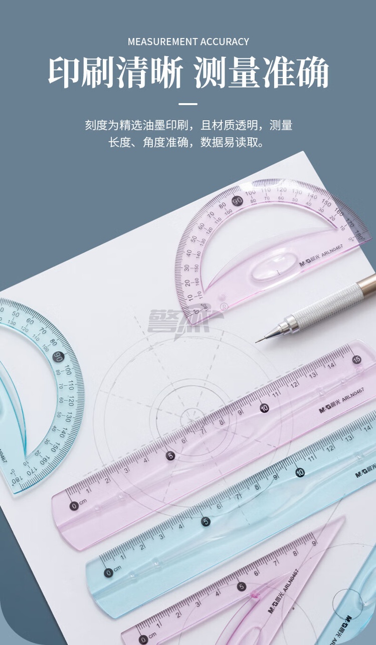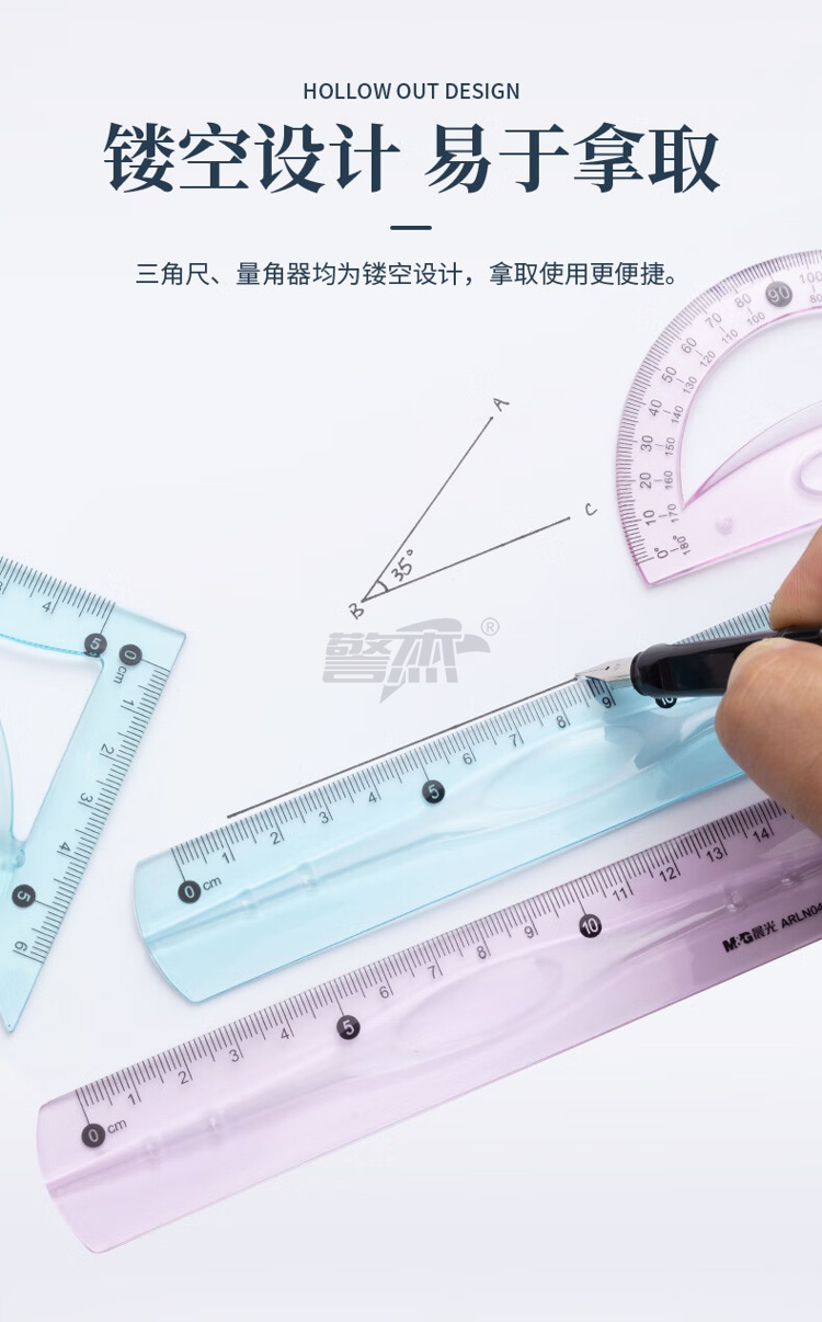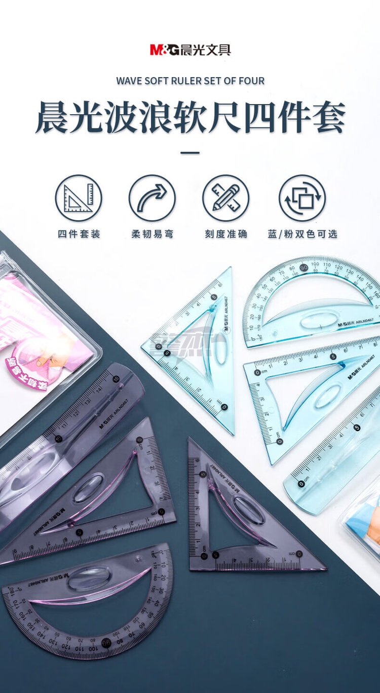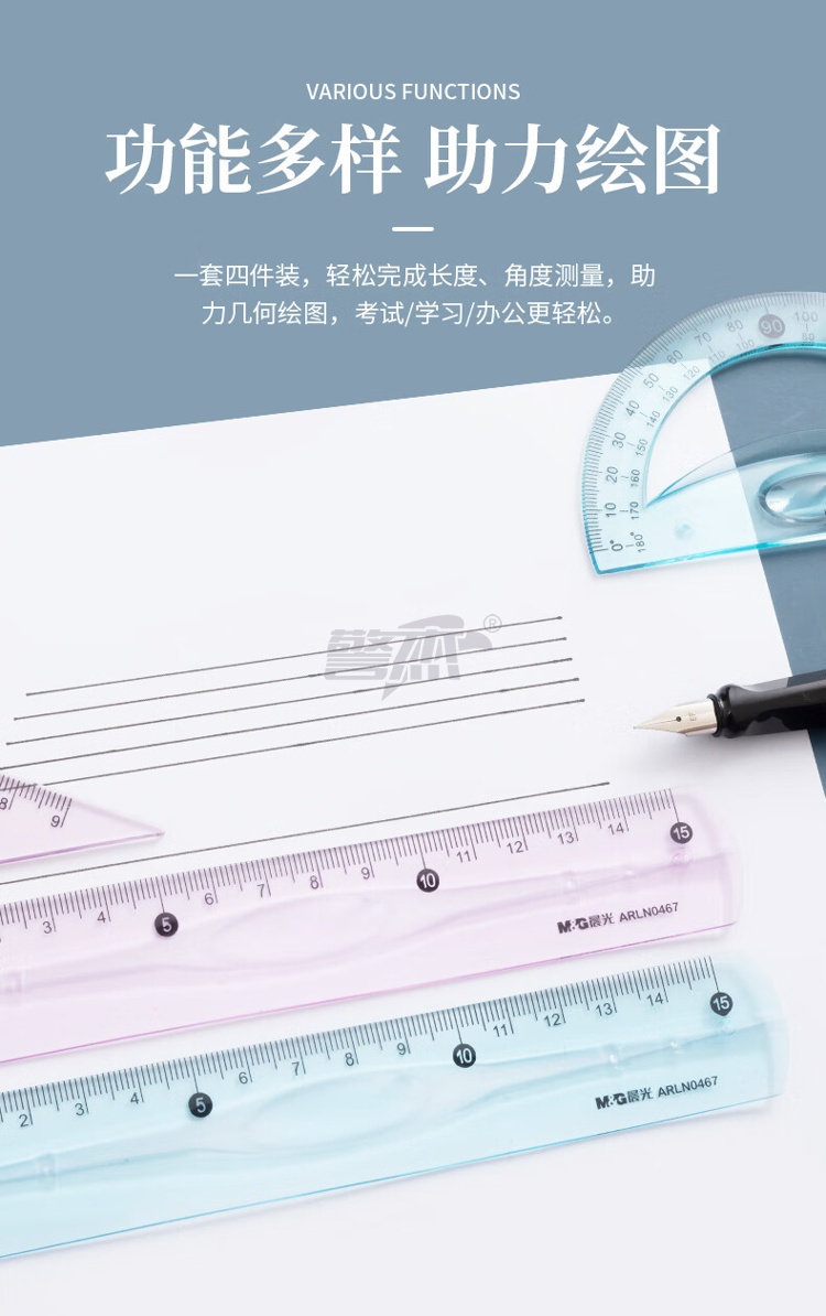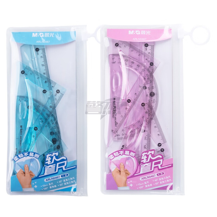 产品名称 : 晨光(M&G)学生绘图软尺套装 15cm直尺+三角尺*2+量角器 开学文具 颜色随机4件套ARLN0467