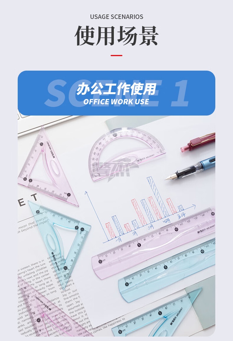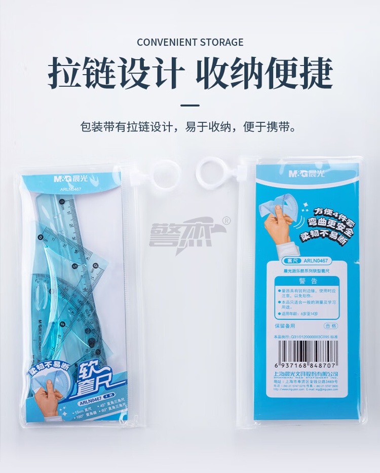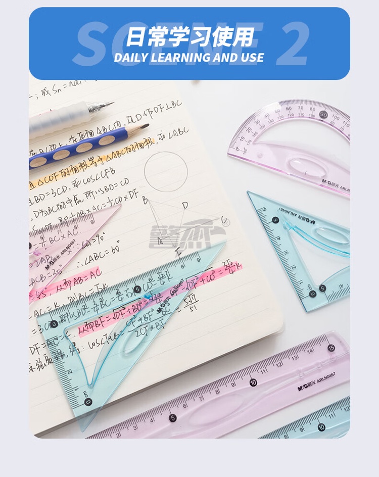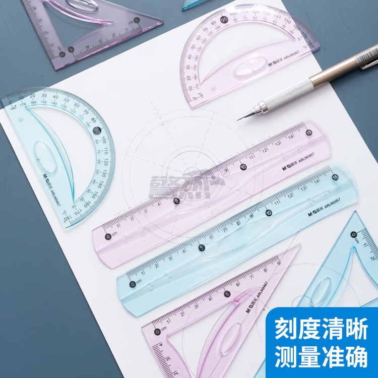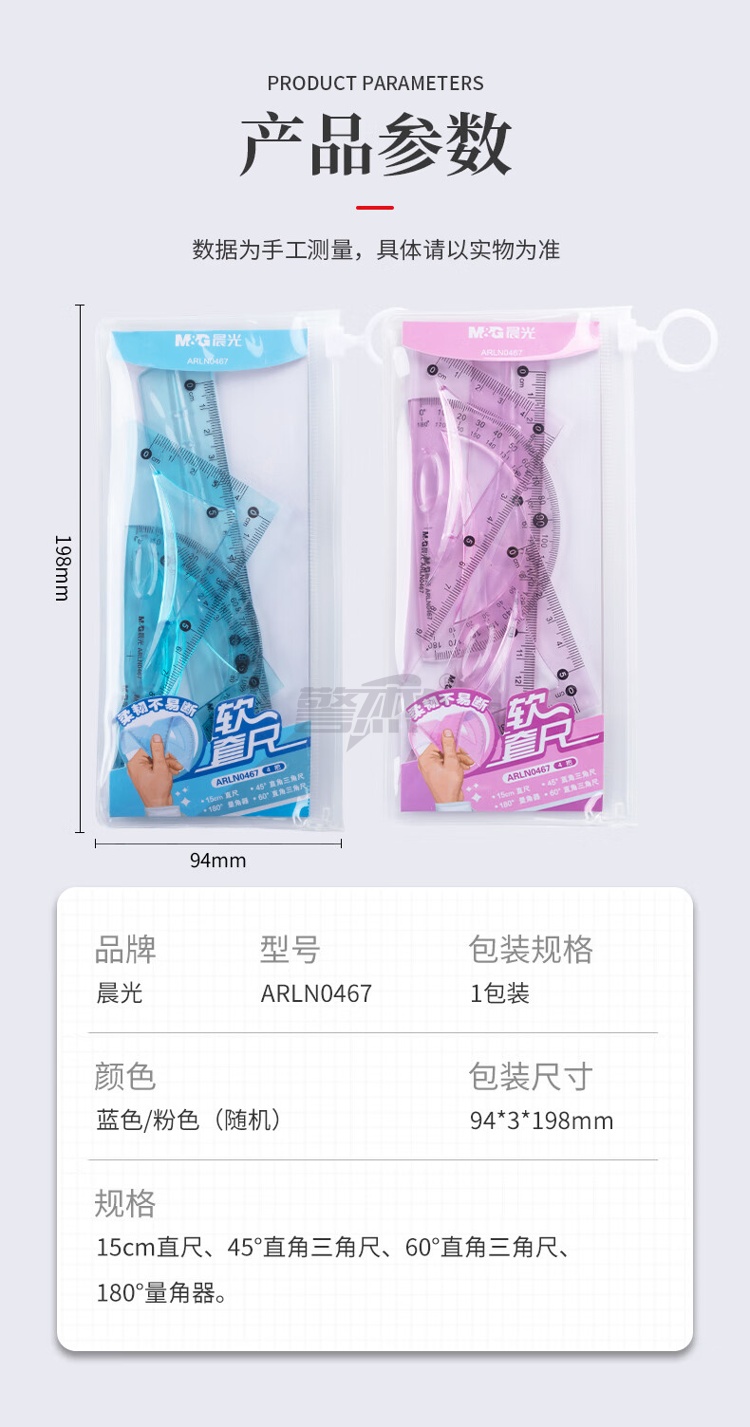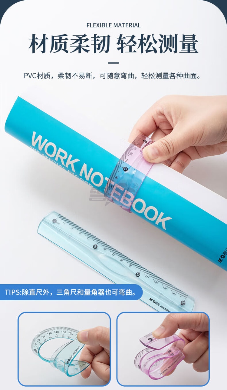 产品名称 : 晨光(M&G)学生绘图软尺套装 15cm直尺+三角尺*2+量角器 开学文具 颜色随机4件套ARLN0467