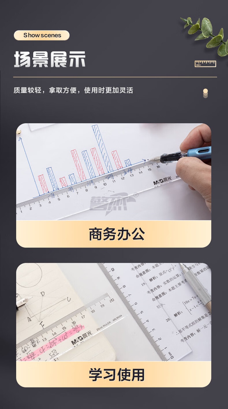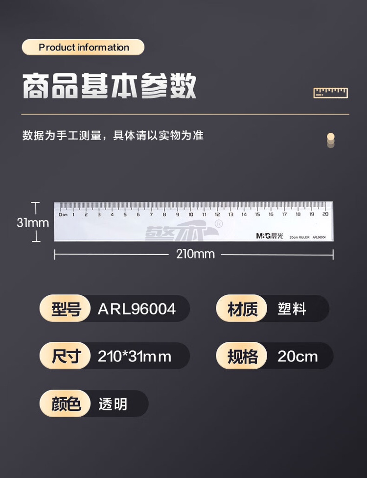 产品名称 : 晨光(M&G)文具20cm学生办公通用直尺 测量绘图尺子 办公用品 开学文具10个装 ARL96004