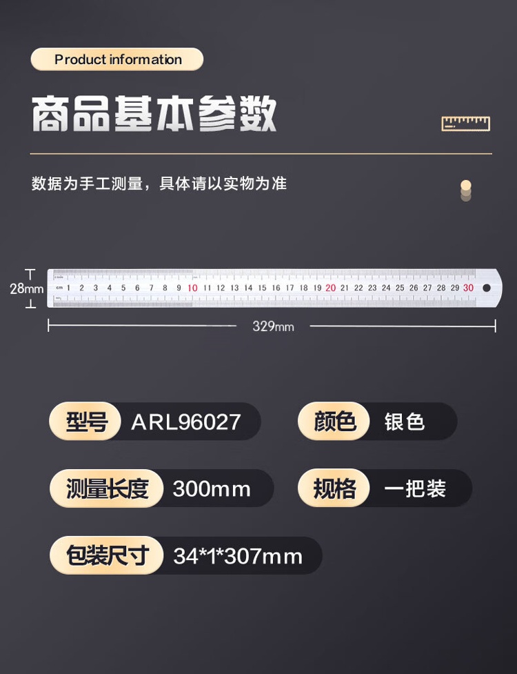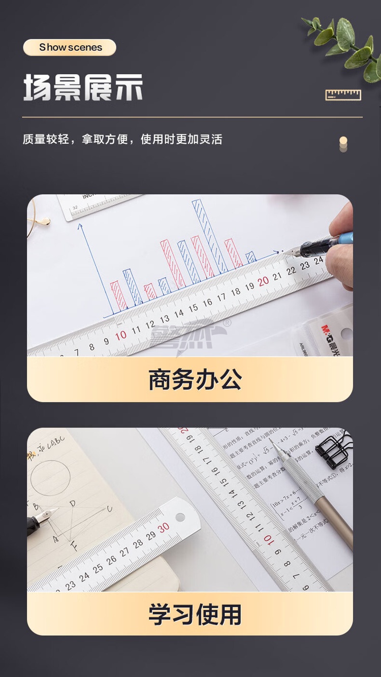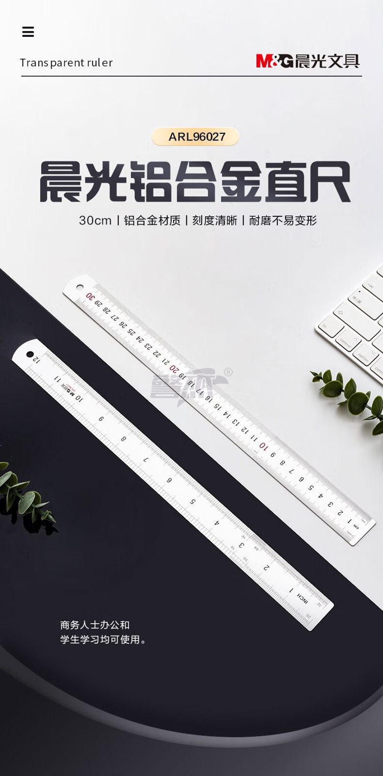 产品名称 : 晨光(M&G)文具30cm铝合金直尺 测量绘图刻度尺子 双向刻度尺 办公用品 开学文具10个装ARL96027