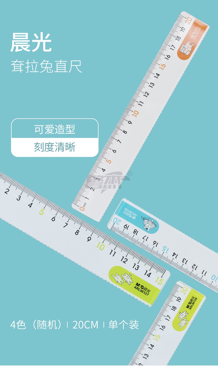 产品名称 : 晨光(M&G)文具20cm学生直尺 考试绘图制图波浪边尺子 耷拉兔系列 开学文具10个装 颜色随机ARL96128