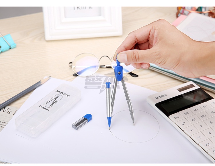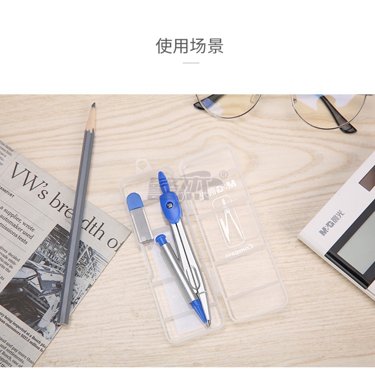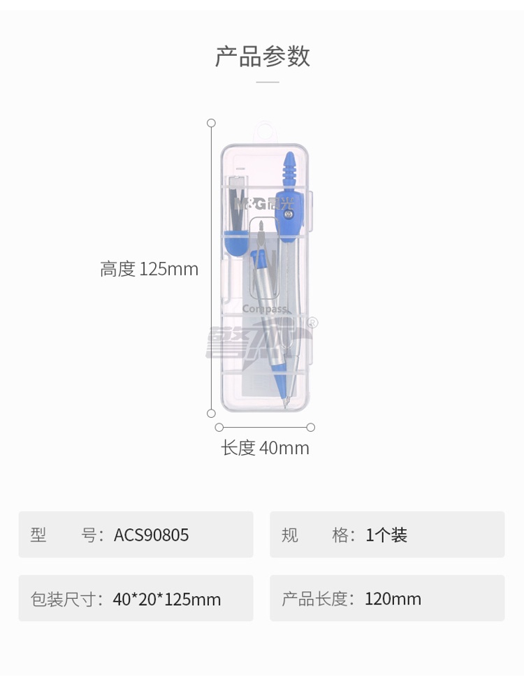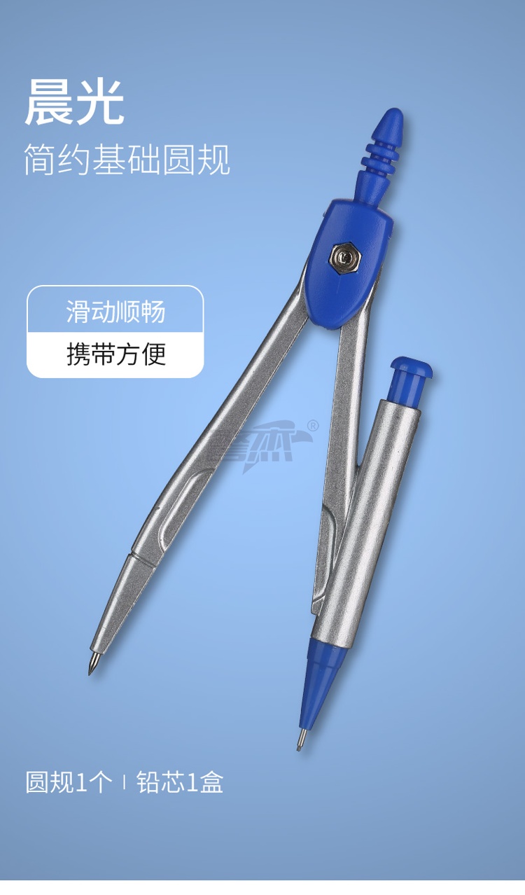 产品名称 : 晨光(M&G)文具蓝色简约基础圆规套装 学生绘图考试圆规套装(内附铅芯)ACS90805