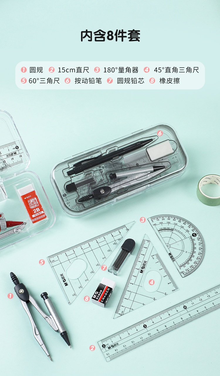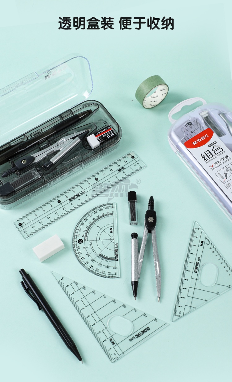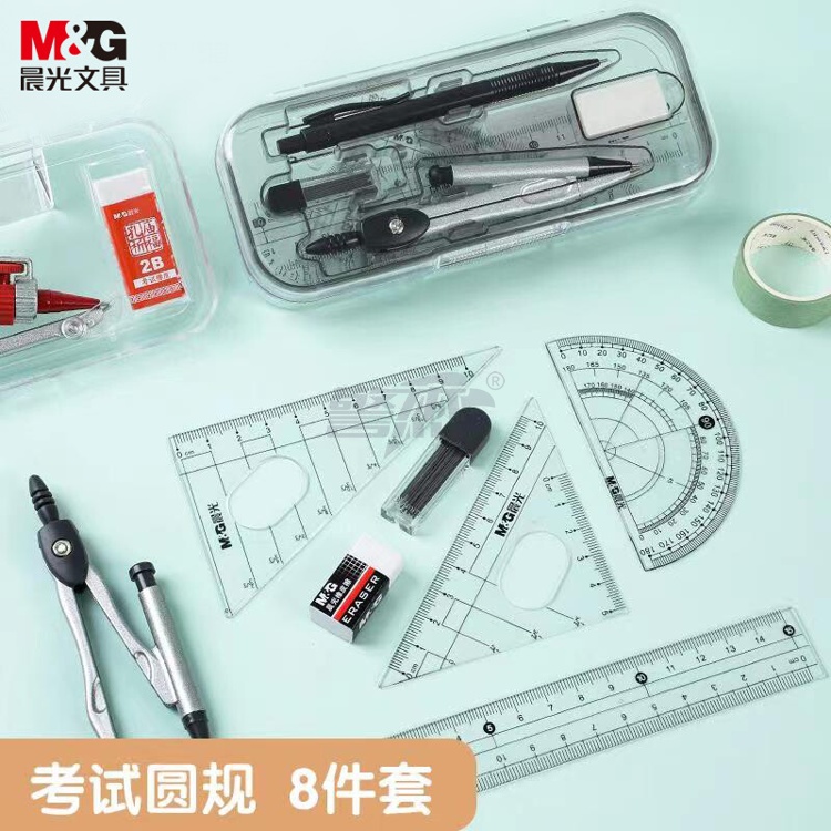 产品名称 : 晨光(M&G)文具学生考试绘图套装(圆规+橡皮+自动铅笔+铅芯+套尺四件套)学习用品组合装 8件套ACS90807