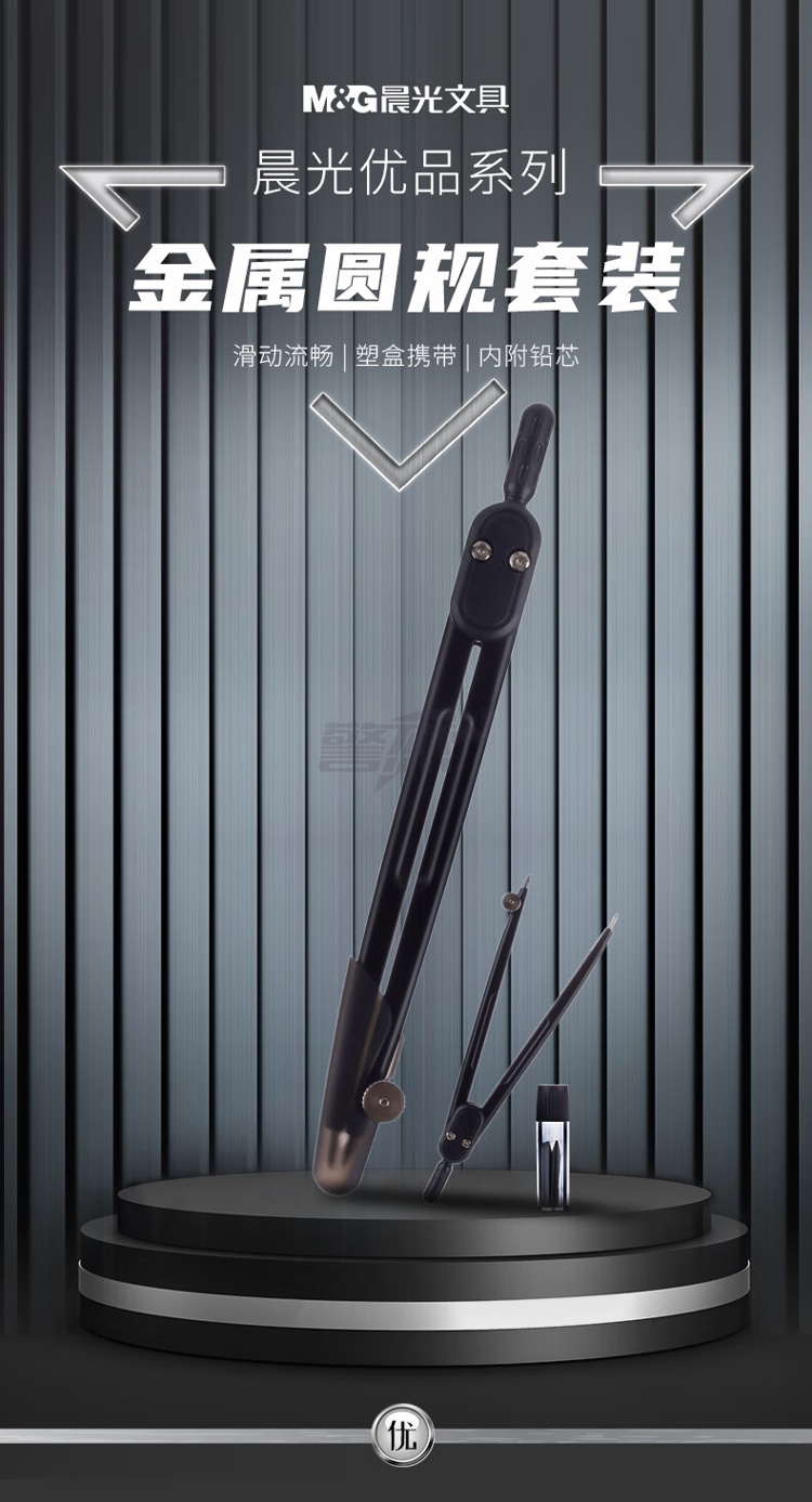 产品名称 : 晨光(M&G)文具金属圆规套装 优品系列学生绘图考试圆规(内附3根HB铅芯) 学生文具套装ACS90884