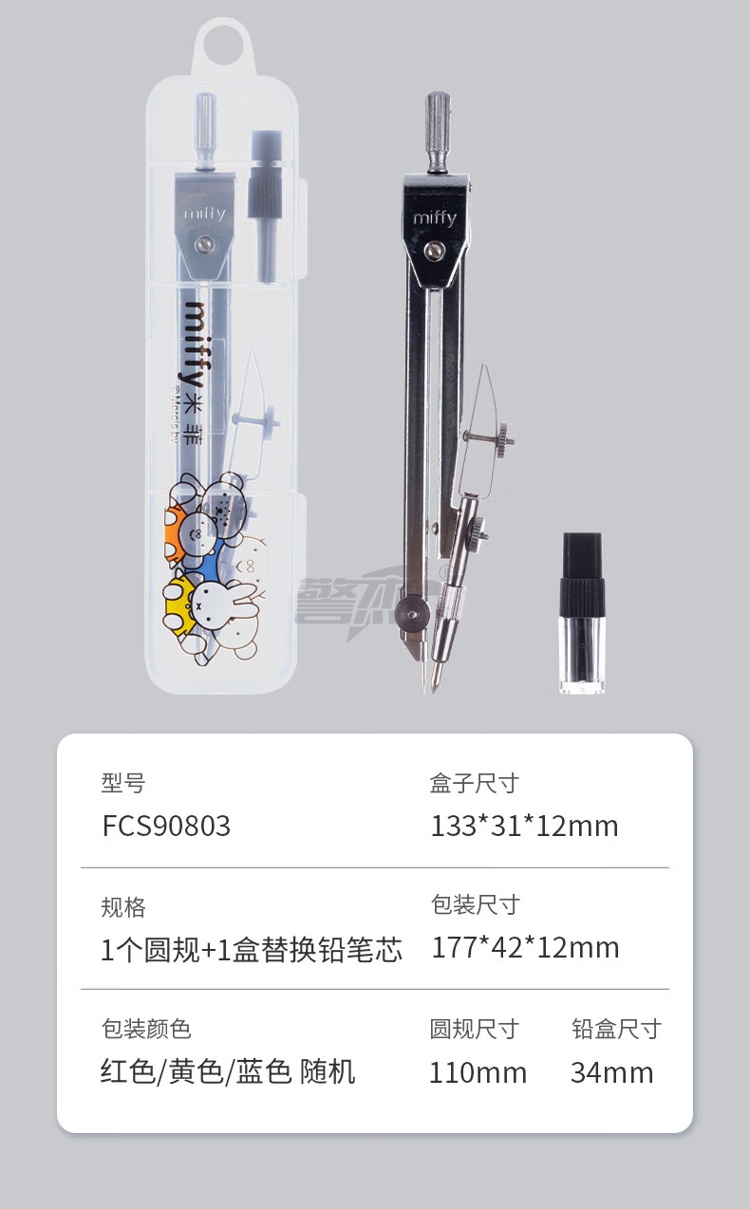 产品名称 : 晨光(M&G)文具金属圆规套装 米菲系列学生绘图考试圆规(内附HB铅芯) 开学文具FCS90803
