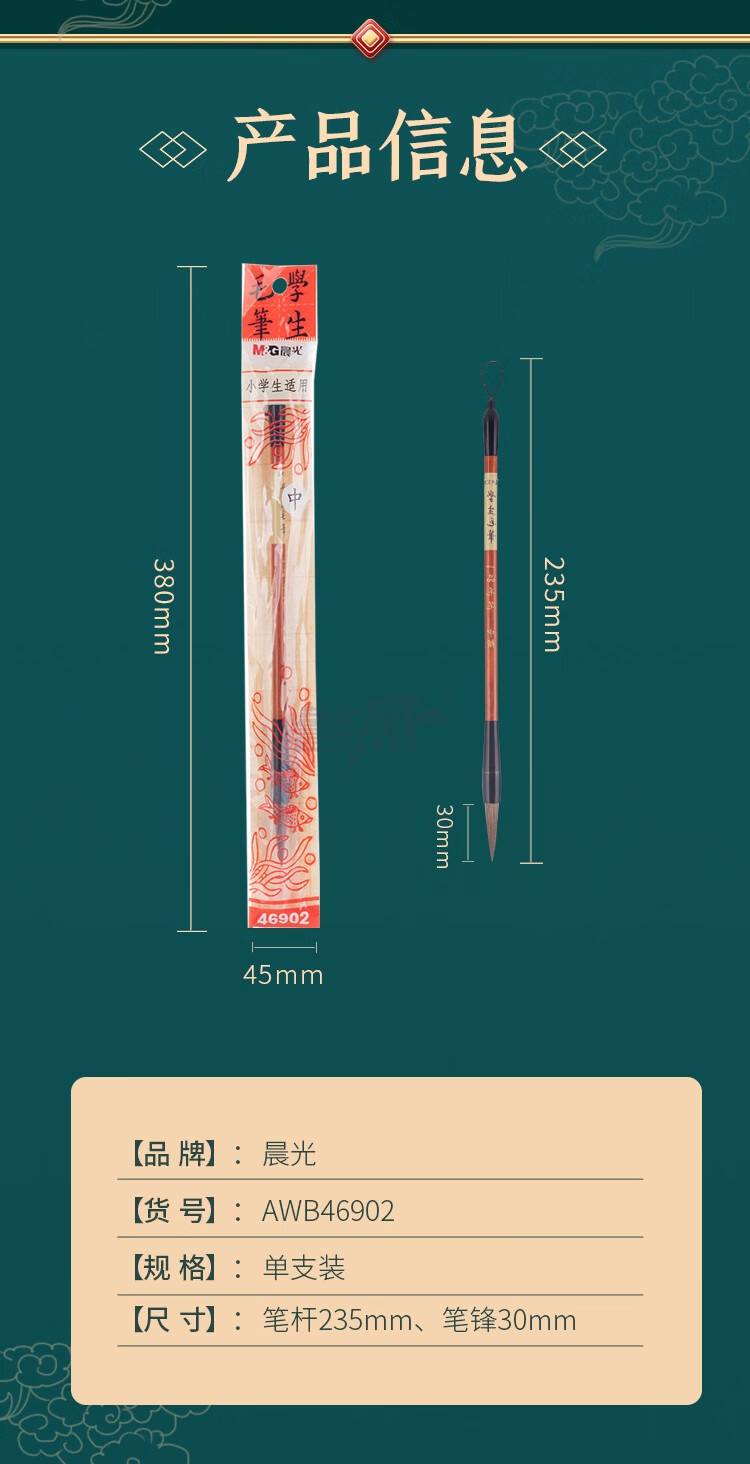 产品名称 : 晨光(M&G)文具中号一品狼毫毛笔 小学生书法练字笔 绘画毛笔 开学文具AWB46902
