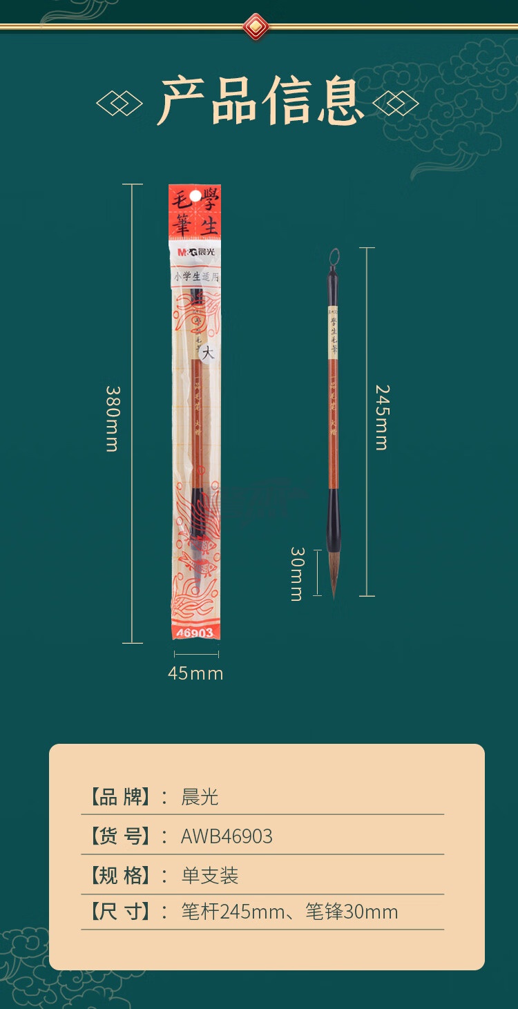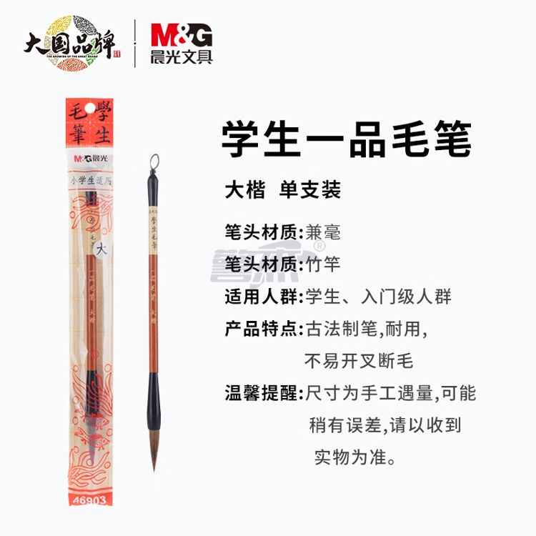 产品名称 : 晨光(M&G)文具大号一品狼毫毛笔 小学生书法练字笔 绘画毛笔 开学文具AWB46903